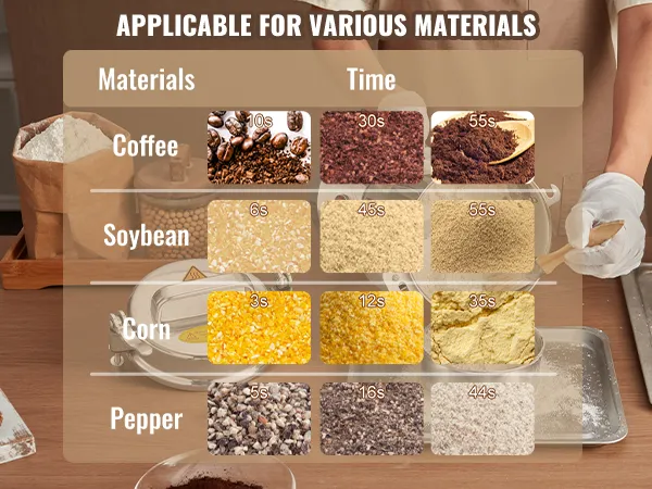Duurzaam materiaal: de kleine elektrische kruidenmolen is gemaakt van roestvrij staal van voedingskwaliteit, is duurzaam en veroorzaakt geen verwerkingsvervuiling. De gespstructuur is goed afgedicht en biedt hoge veiligheid. Als u niet tevreden bent met het maalresultaat, kunt u de grove deeltjes eruit zeven en opnieuw malen voor een fijner resultaat.