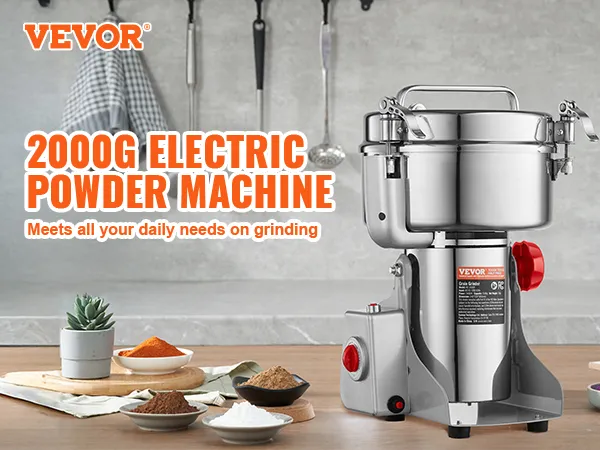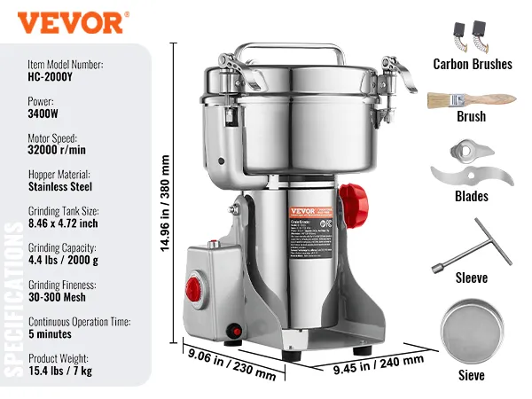 VEVOR Elektrische Graanmolen Hoge Snelheid Kruidenmolen 2 kg 3400 W, Roestvrijstalen Pulverizer Machine, voor Droge Granen Specerijen Granen Koffie Maïs Peper, Draaibaar Type 24 x 23 x 38 cm