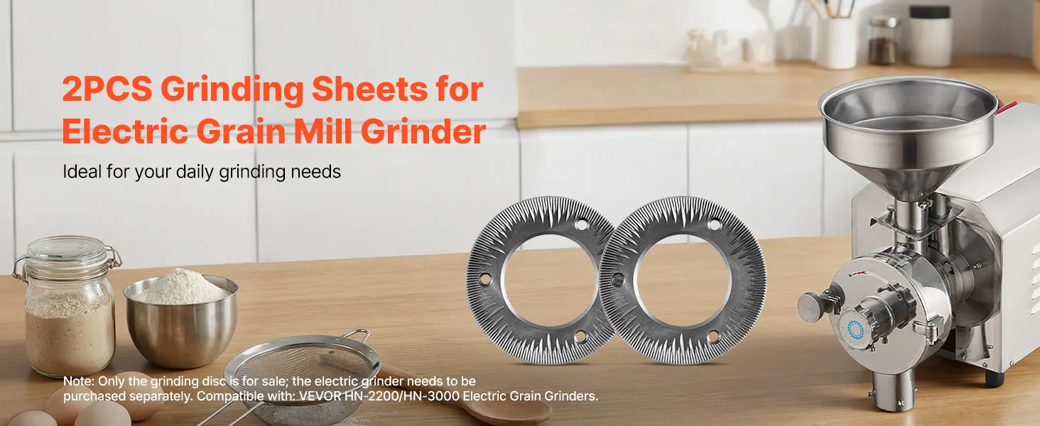 Hoge compatibiliteit: Deze vervangende maalschijven zijn precies afgestemd op de VEVOR HN-2200 en HN-3000 elektrische graanmolens. Ze zijn eenvoudig te installeren en te vervangen, wat zorgt voor consistente prestaties en reproduceerbare resultaten.