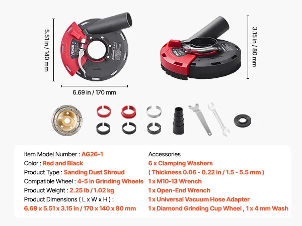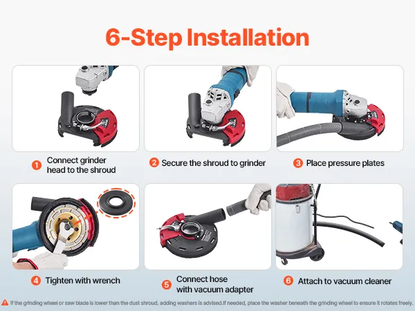 Enhanced Compatibility: The surface grinder dust shroud comes with 6 clamping washers with a thickness range of 0.06-0.22in / 1.5-5.5mm, significantly increasing compatibility with angle grinder models. It fits 39-51mm angle grinder front covers and is easy to install.