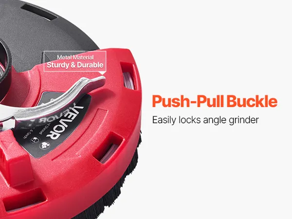 The dust shroud for angle grinder features a metal buckle for more stable grip. Simply push and pull the buckle to securely lock the angle grinder in place, making it incredibly easy and convenient to use.