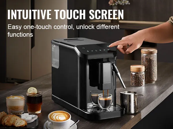 The intuitive touch screen makes operation a breeze. With a single touch, you can select from options like single espresso, double espresso, and more.