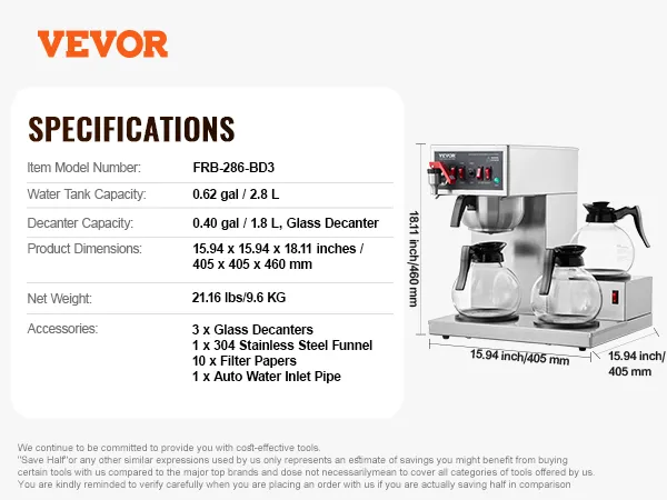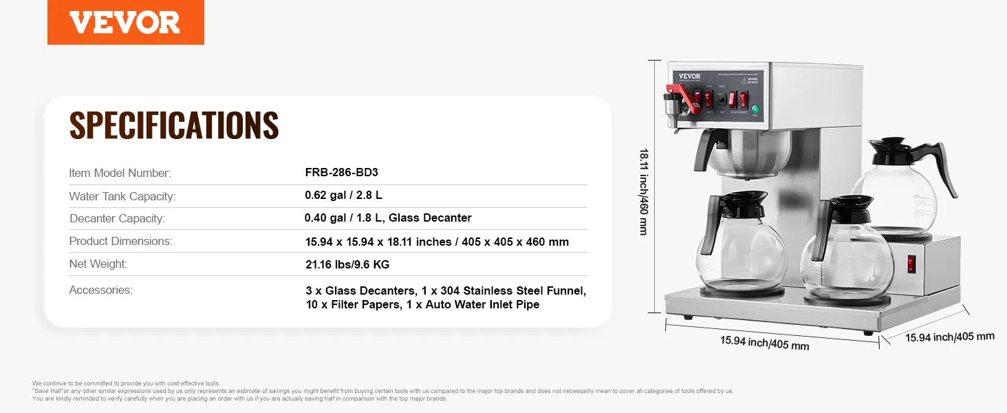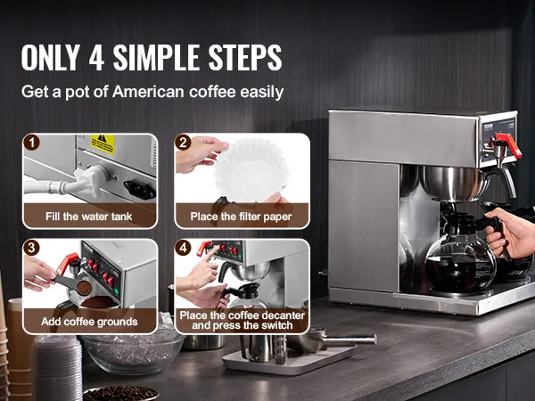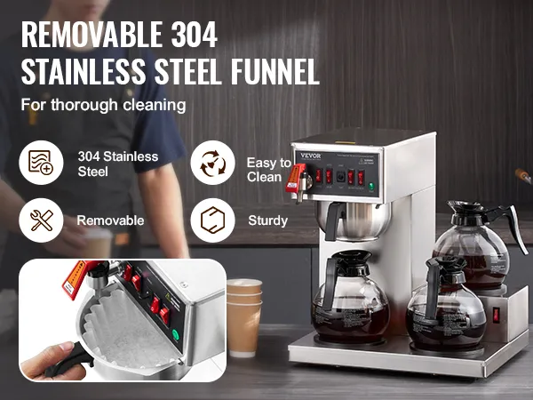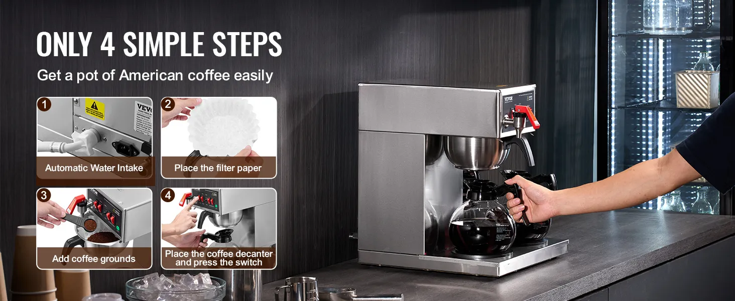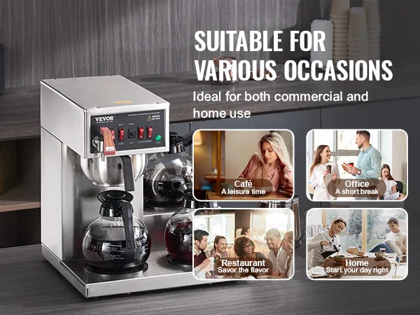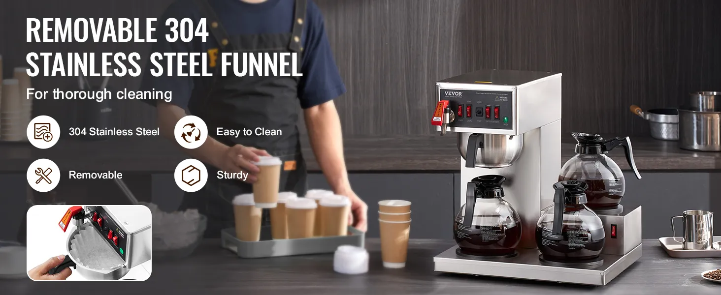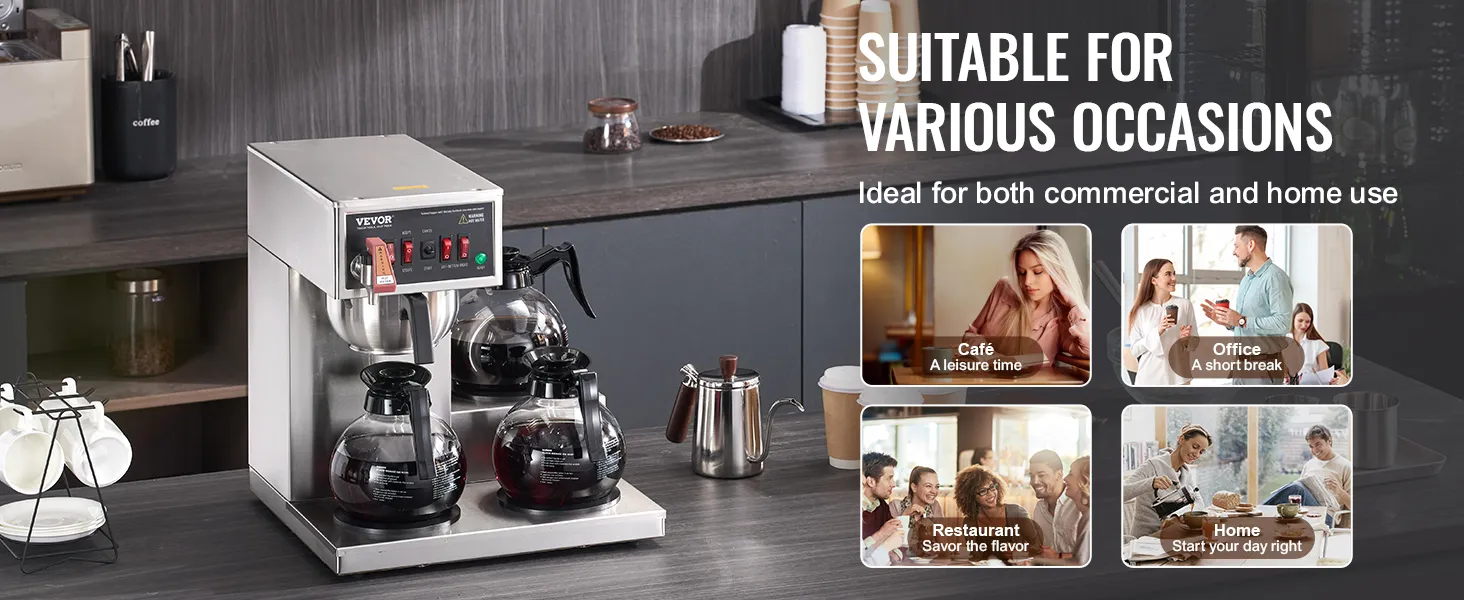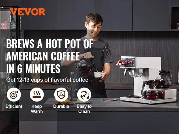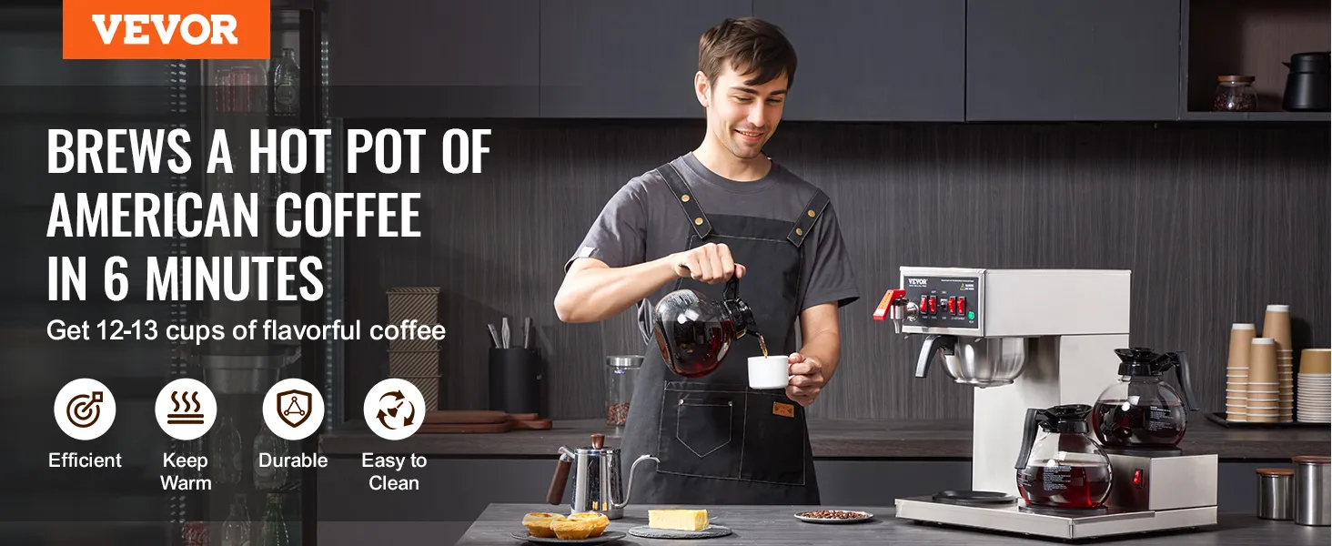Efficient Coffee Brewing: The VEVOR commercial drip coffee maker brews a whole pot of coffee in just 6 minutes, producing 12-13 cups of delicious coffee without the wait.