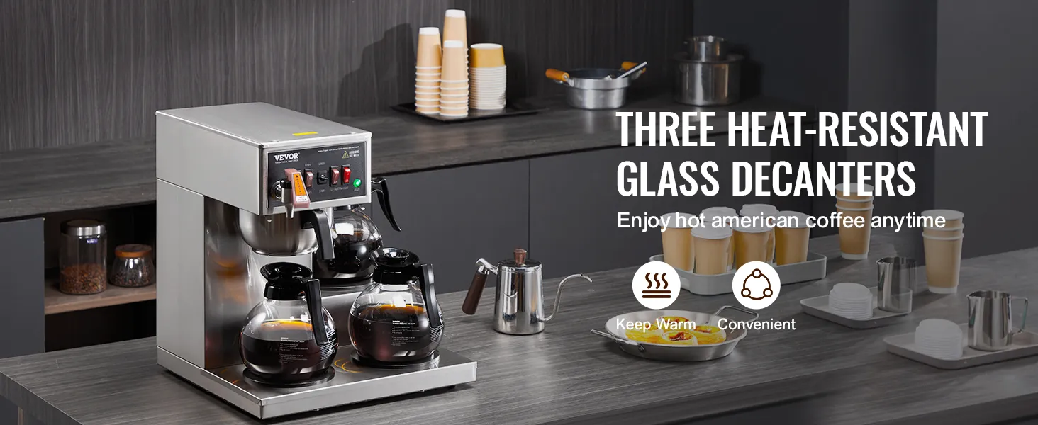 Long-Lasting Keep Warm: This commercial coffee machine is equipped with 3 warming plates and 3 glass carafes, your prepared hot coffee is always ready to serve!