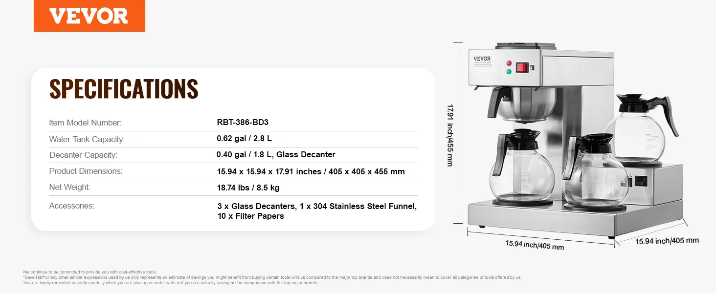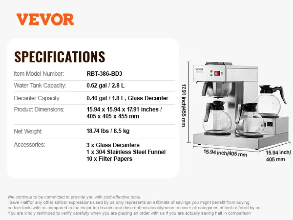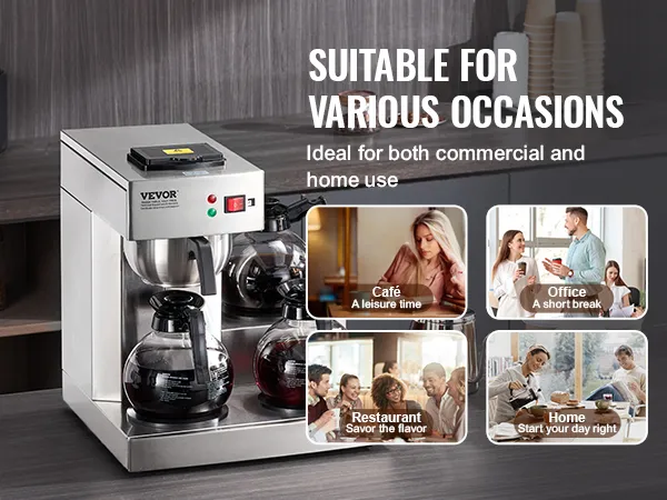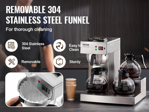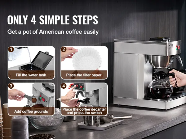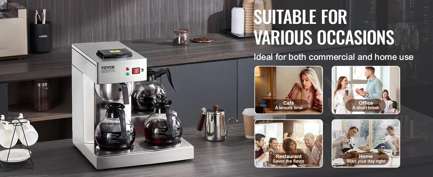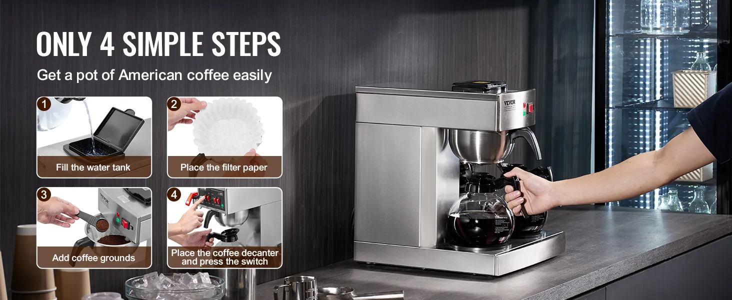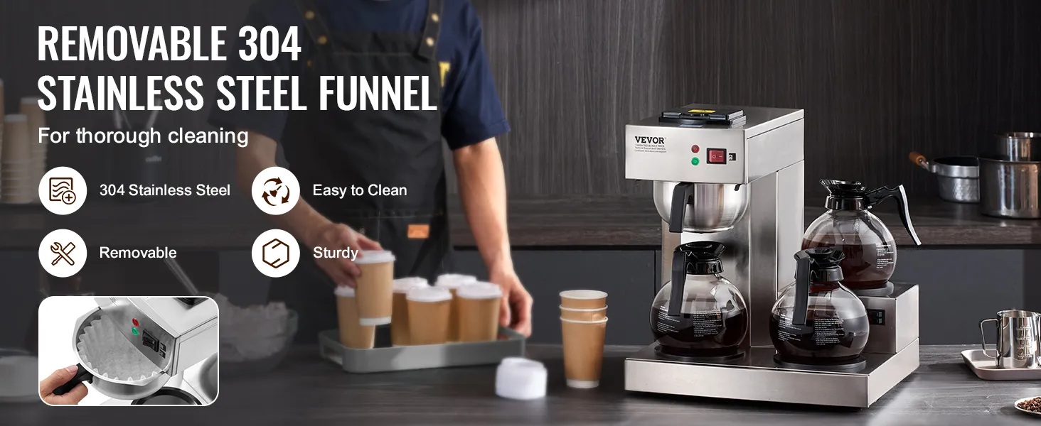 Efficiënt koffiezetten: het VEVOR commerciële druppelkoffiezetapparaat zet in slechts 6 minuten een hele kan koffie en produceert 12-13 kopjes heerlijke koffie zonder wachttijd.