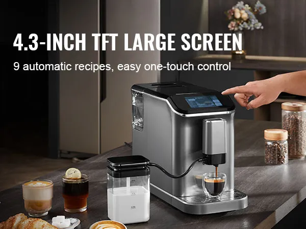 Large TFT Screen: The multifunctional and sensitive 4.3-inch TFT touch screen offers different menu options. With just a single touch, you can easily brew a single espresso, double espresso, American coffee, cappuccino, latte, and access to other functions.