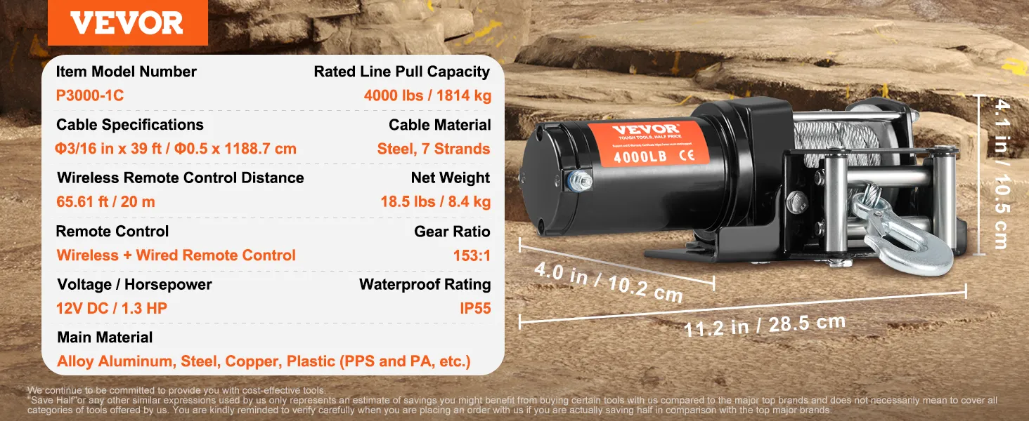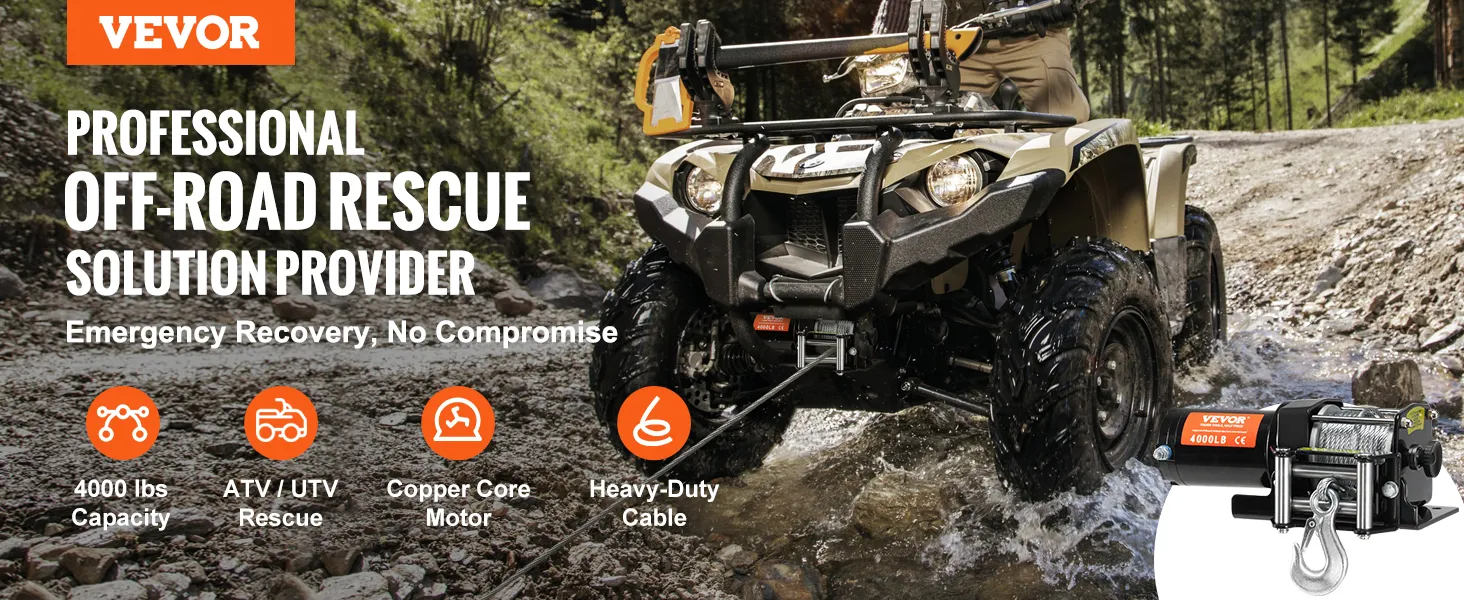 De noodstroomvoorziening van uw voertuig: Onze heavy-duty elektrische lier is speciaal ontworpen voor off-road herstel en biedt een krachtige katrolcapaciteit van 4000 lbs / 1814 kg. Als uw voertuig vast komt te zitten in de modder of in een stortbui terechtkomt, biedt deze lier de extra aandrijving die u nodig heeft om snel weer op het goede spoor te komen. Ideaal voor het slepen van kleine voertuigen zoals ATV's en UTV's, zodat uw avonturen nooit eindigen.