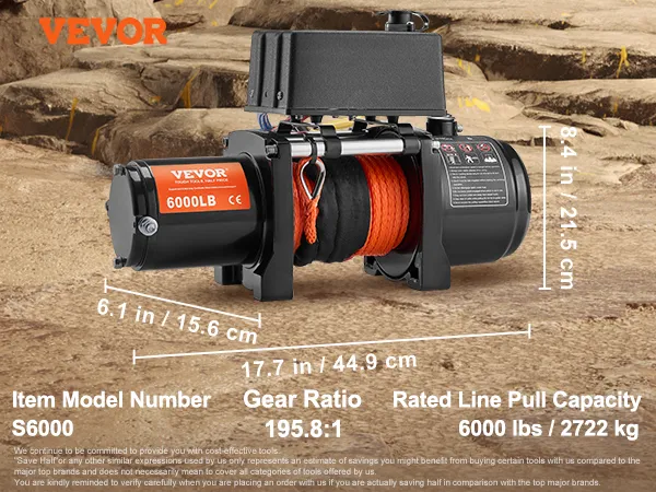 Power that Gets You Out of Any Jam: Our truck winch is driven by a 12V DC/2.5HP permanent magnet copper motor, delivering consistent power when you need it most. Featuring an advanced 3-stage planetary gear system and a 195.8:1 gear ratio, this winch ensures powerful pulling capacity, even in harsh weather and the deep mud. Get ready to tackle any challenge with confidence!
