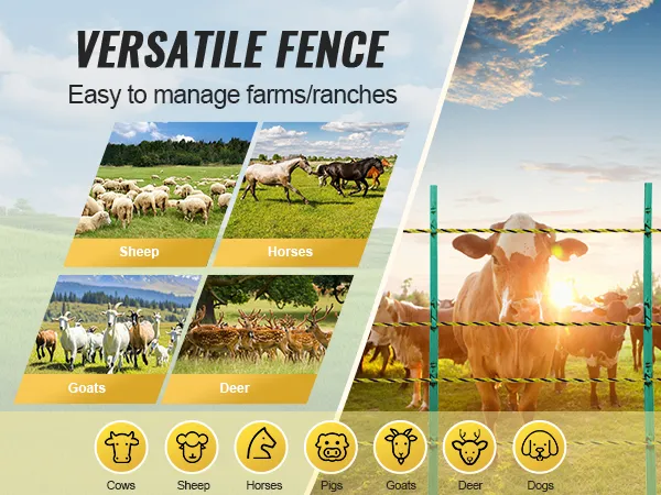 Onze multifunctionele draagbare afrasteringsdraad is geschikt voor diverse boerderijdieren, waaronder runderen, schapen, paarden, varkens, geiten, herten en honden. Door de pulsstroom effectief te regelen, kunt u eenvoudig het bewegingsbereik van uw vee controleren.