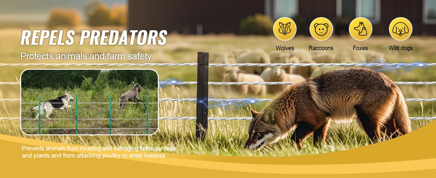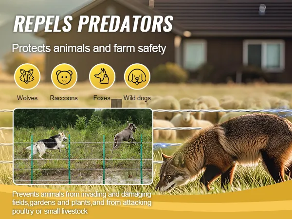 Hoge geleidbaarheid: de duidelijk zichtbare draadafrastering van goed geleidend roestvrij staaldraad zendt een veilige en korte stroompuls uit. Wanneer dieren het hek aanraken, ontwikkelen ze snel een geconditioneerde reflex die verder contact verhindert. Dit ontwerp houdt wilde dieren effectief weg van gewassen, boomgaarden en tuinen en beschermt tegelijkertijd uw vee.