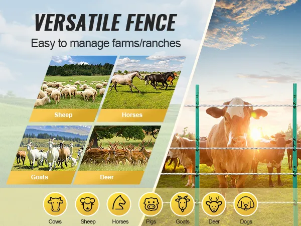 Onze multifunctionele draagbare afrasteringsdraad is geschikt voor diverse boerderijdieren, waaronder runderen, schapen, paarden, varkens, geiten, herten en honden. Door de pulsstroom effectief te regelen, kunt u eenvoudig het bewegingsbereik van uw vee controleren.