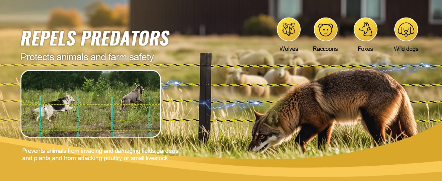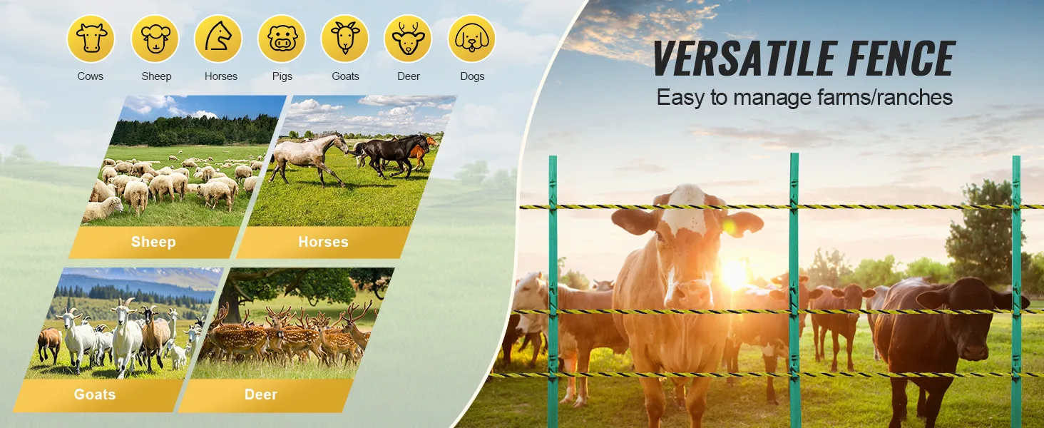 Onze multifunctionele draagbare afrasteringsdraad is geschikt voor diverse boerderijdieren, waaronder runderen, schapen, paarden, varkens, geiten, herten en honden. Door de pulsstroom effectief te regelen, kunt u eenvoudig het bewegingsbereik van uw vee controleren.