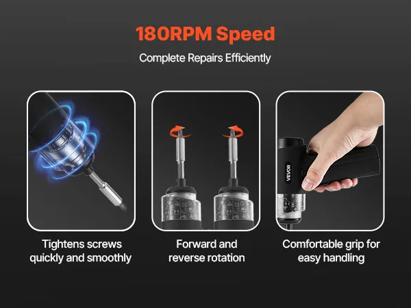 Krachtige aandrijving en regelbaar koppel: onze elektrische schroevendraaier beschikt over koppelinstellingen van 0,5–5 N·m en een toerental van 180 tpm, waarmee u kleine elektronische apparaten, huishoudelijke apparaten en dagelijkse reparaties eenvoudig en nauwkeurig kunt vastschroeven.