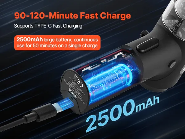 Deze oplaadbare accuschroevendraaier werkt op een 2500 mAh-batterij en gaat tot 50 minuten mee op één lading. De moderne Type-C-snellaadpoort heeft slechts 90 tot 120 minuten nodig om de volledige capaciteit te bereiken. Dit minimaliseert downtime en zorgt ervoor dat u de klus soepel kunt klaren.