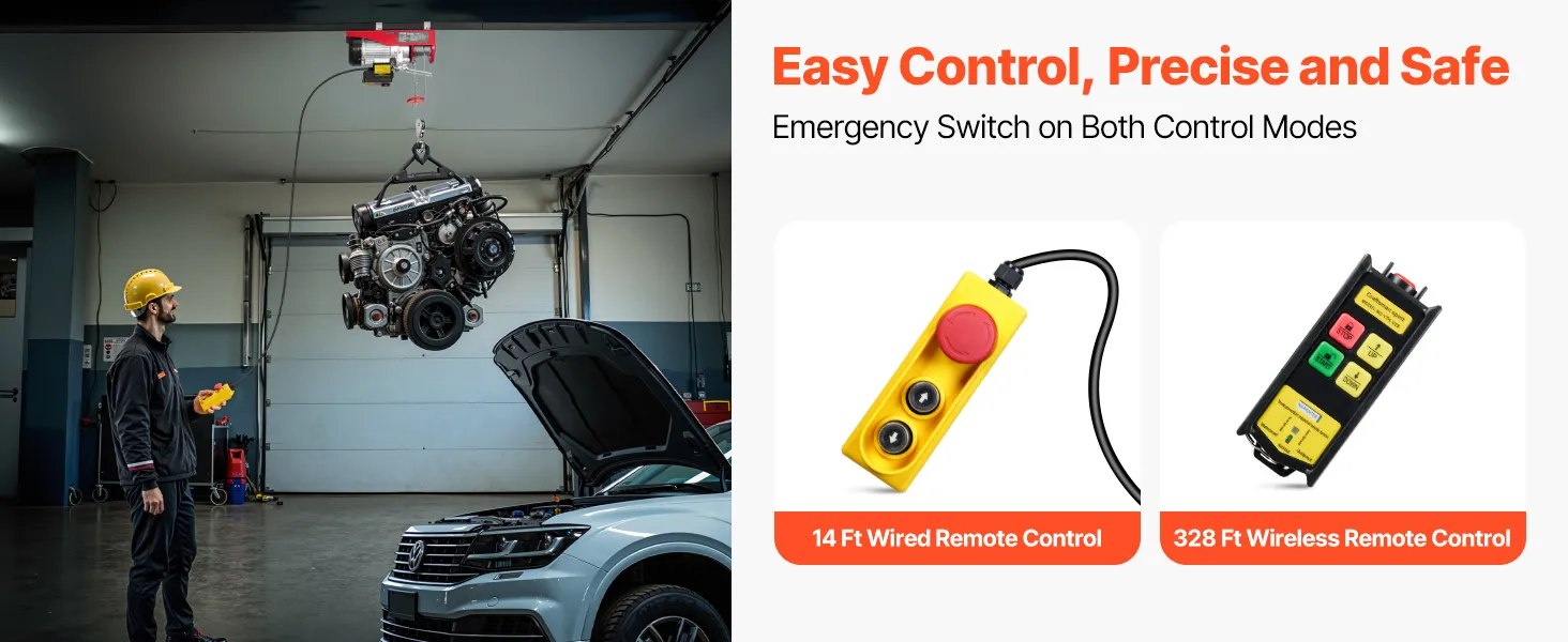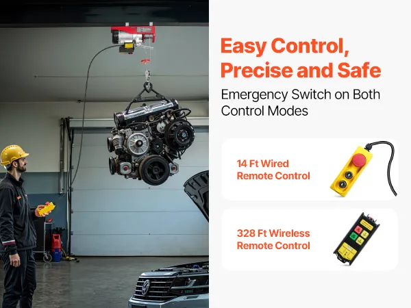 Whether you're up close or far away, this ceiling lift has you covered with both wired and wireless controls. With a wireless range of up to 328 ft (100 m) and an emergency stop switch, you've got peace of mind and flexibility to get the job done right.