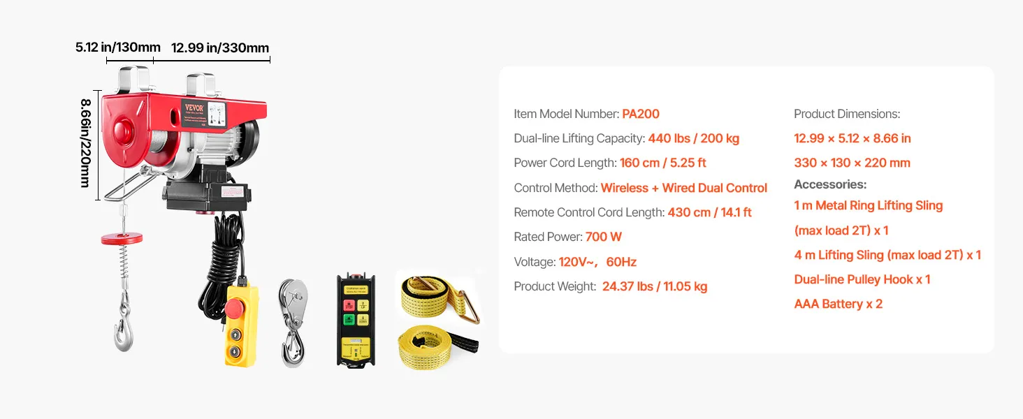 VEVOR elektrische katroltakel - Hef uw last moeiteloos op