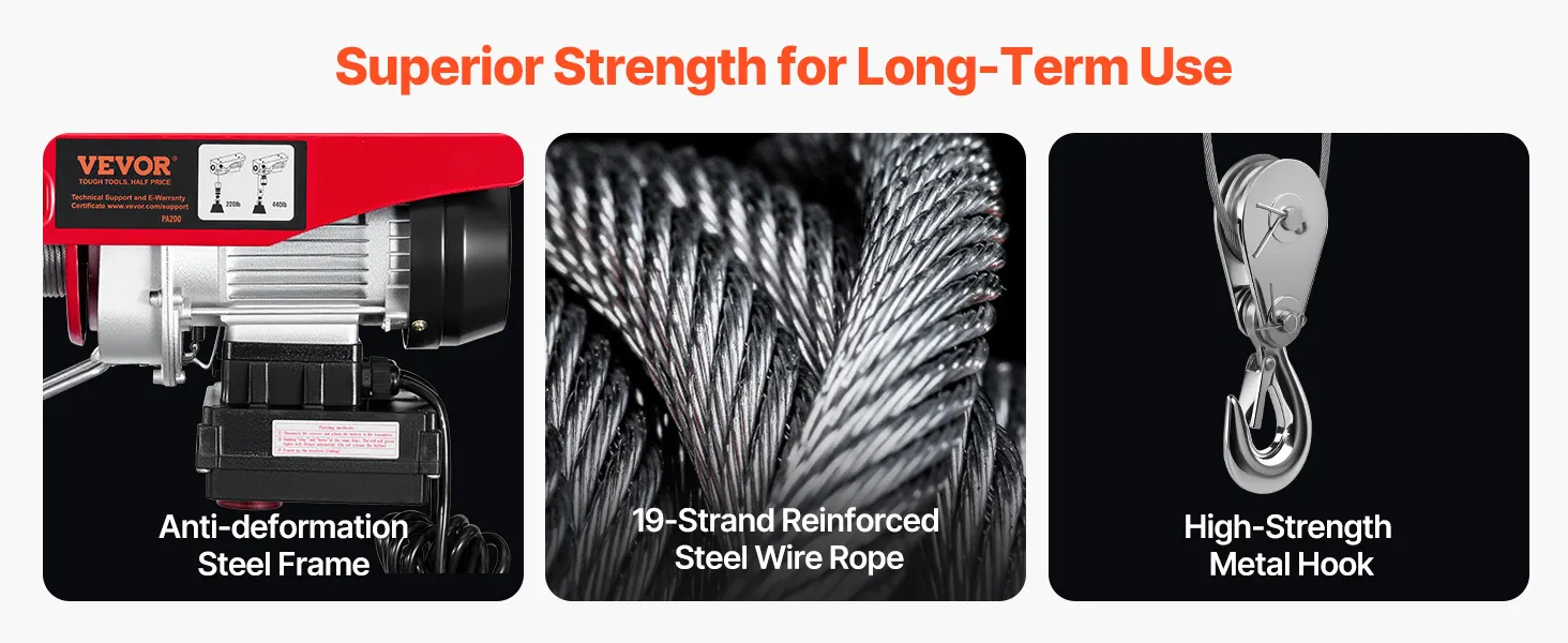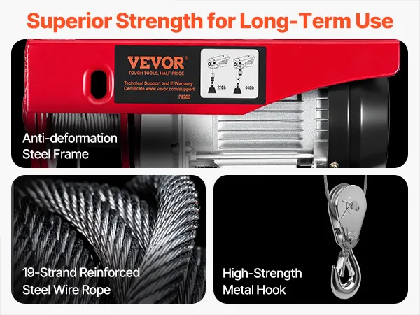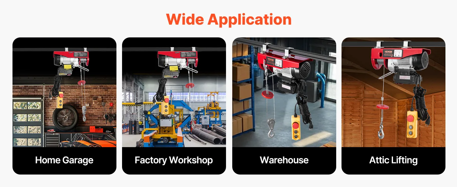 Of u nu in uw garage, magazijn of werkplaats werkt, deze elektrische katrol past zich aan een verscheidenheid aan taken aan, waardoor hij een ideaal hulpmiddel is voor elk project.