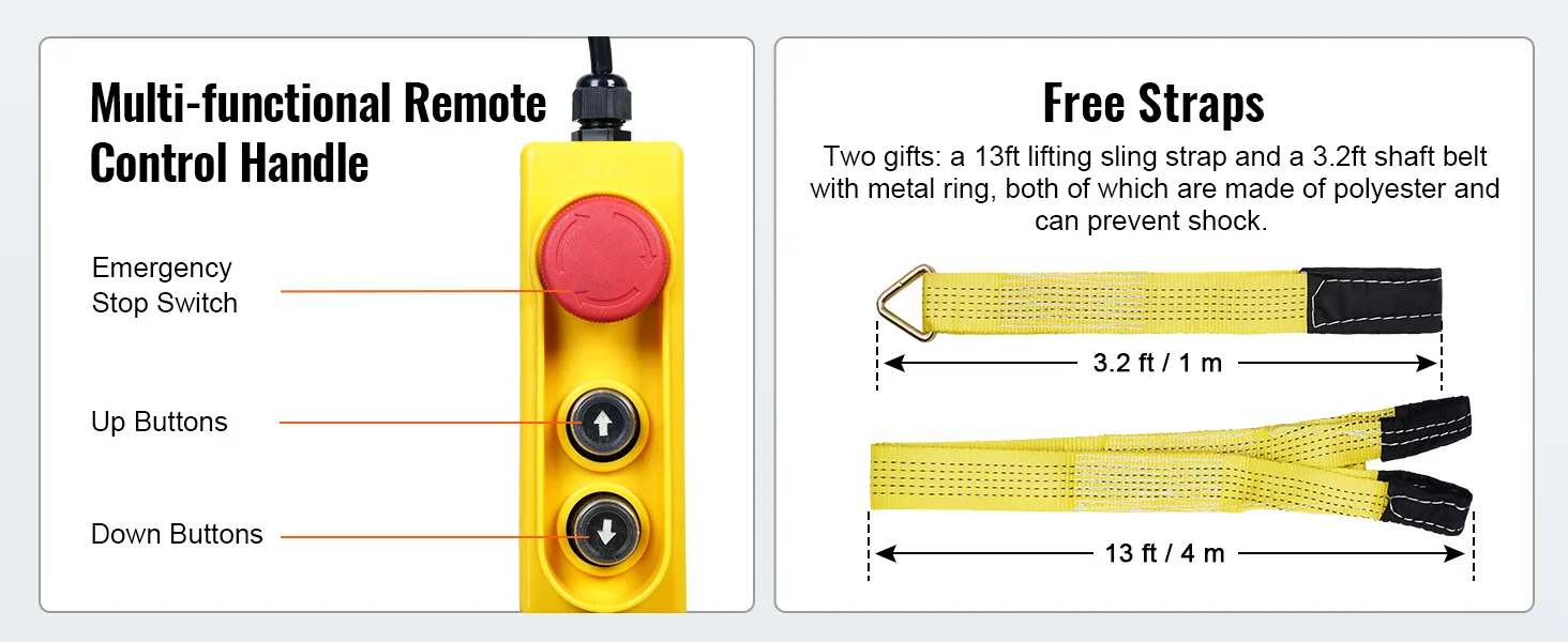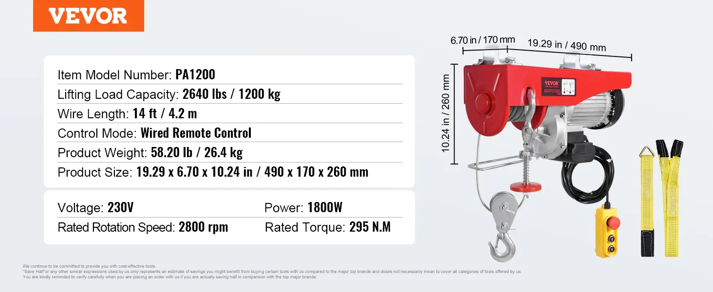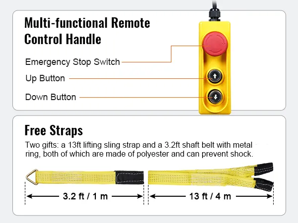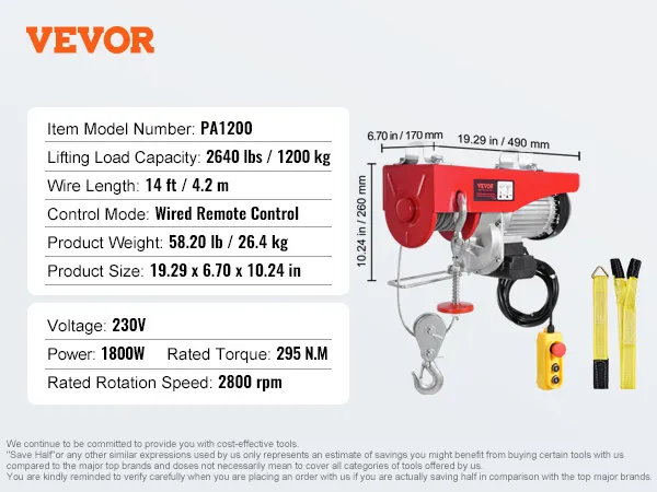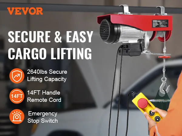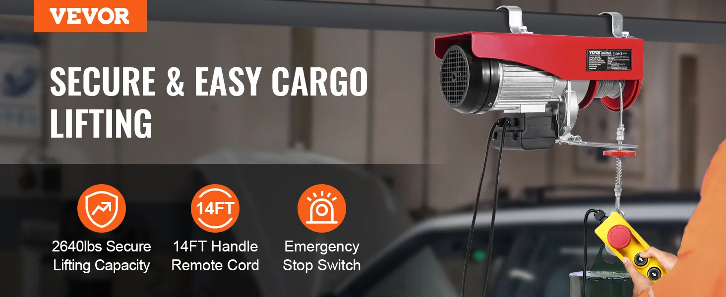 VEVOR, your exclusive tool expert. This electric hoist features a high-performance motor, providing a large load capacity for lifting heavy objects. The lengthened 14 ft wired cable allows you to control the hoist in a secure area.