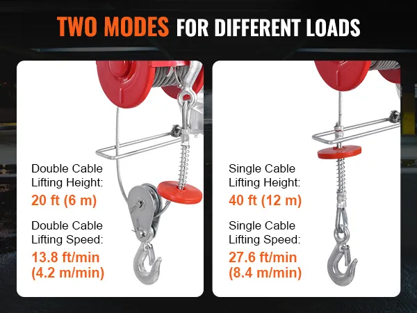 Need speed or strength? Switch between single-cable mode for faster lifts with lighter loads or double-cable mode for heavier jobs. Our electric winch is built to handle whatever you throw at it.