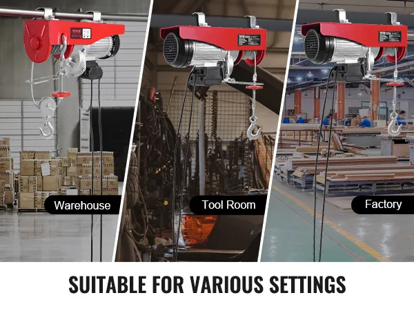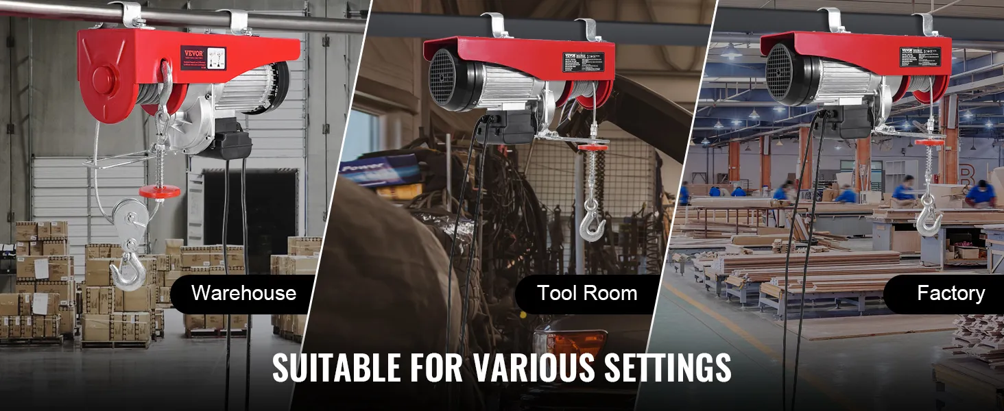 Whether you're working in your garage, warehouse, or workshop, this electric cable hoist adapts to a variety of tasks, making it an ideal tool for any project.