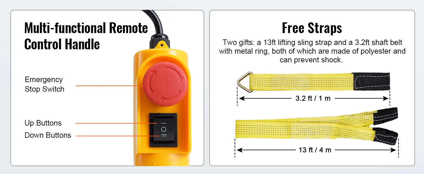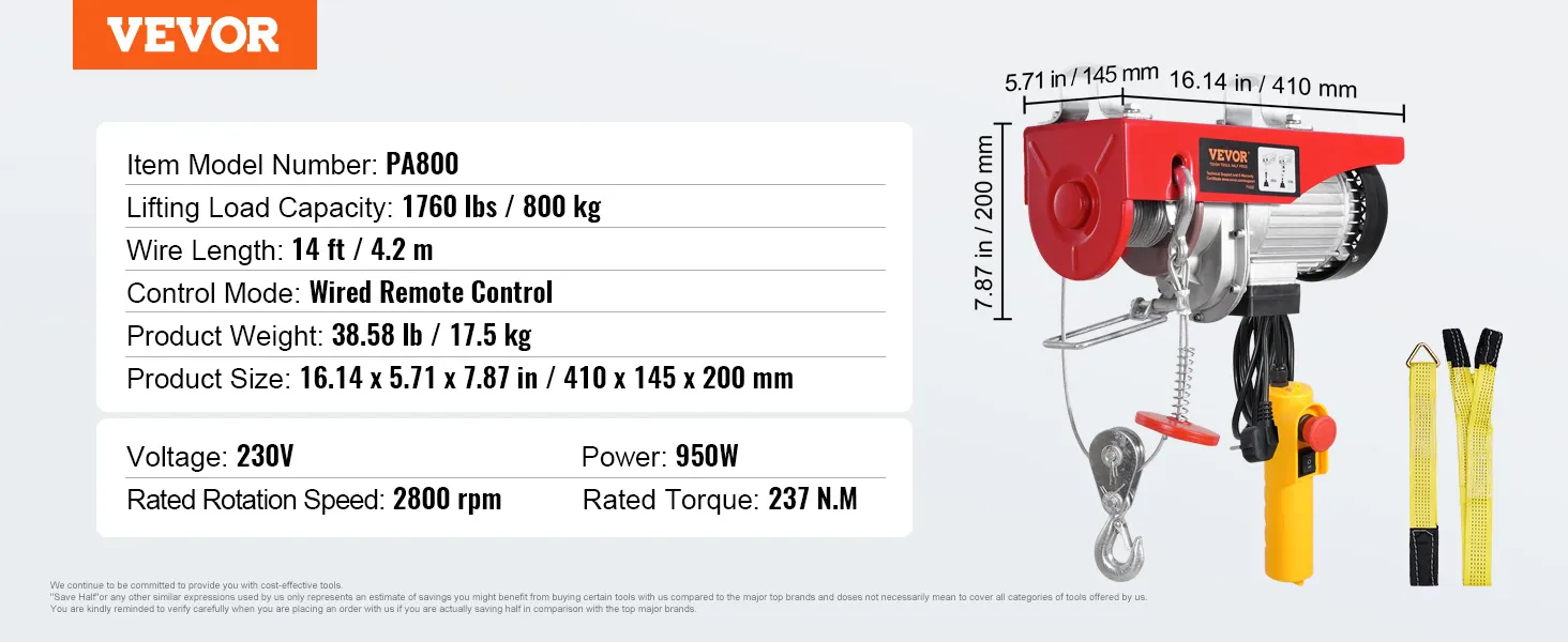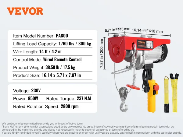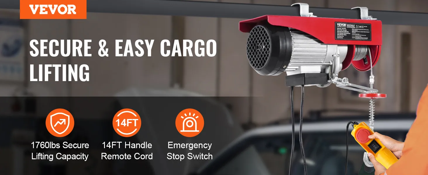 VEVOR, your exclusive tool expert. This electric hoist features a high-performance motor, providing a large load capacity for lifting heavy objects. The lengthened 14 ft wired cable allows you to control the hoist in a secure area.