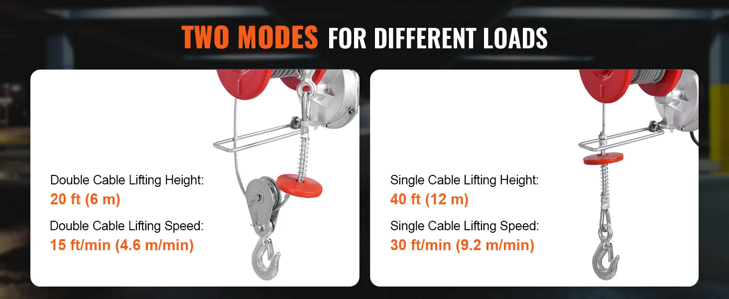 Need speed or strength? Switch between single-cable mode for faster lifts with lighter loads or double-cable mode for heavier jobs. Our electric winch is built to handle whatever you throw at it.