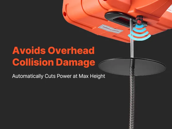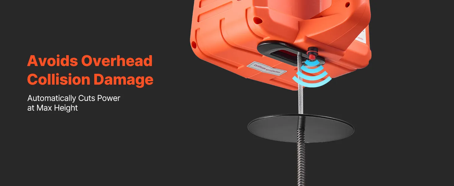 Multi-Layer Security Protection: This electric hoist winch combines electronic and mechanical brakes for confident stopping. A limit switch and 360° latch hook add security, and the motor auto-stops at power loss or top limit to help avoid drops
