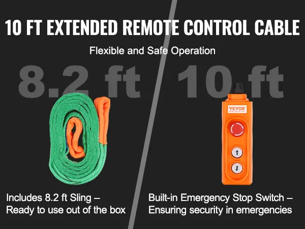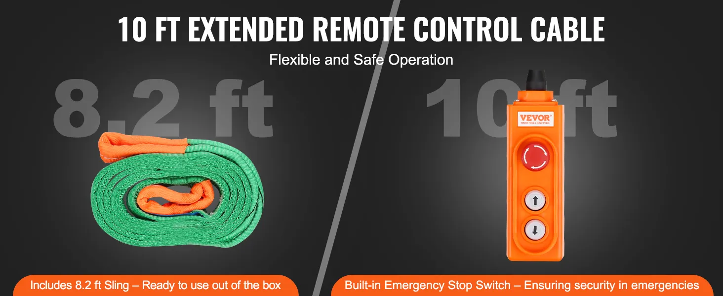 Extended Control Cable: Stay safe and in control with our extended 10 ft cable. Operate the chain electric lift hoist from a comfortable distance using the easy-to-use handle switch.