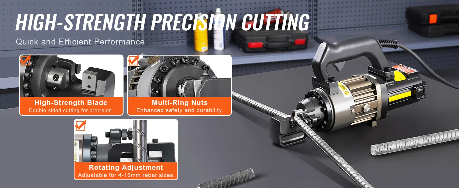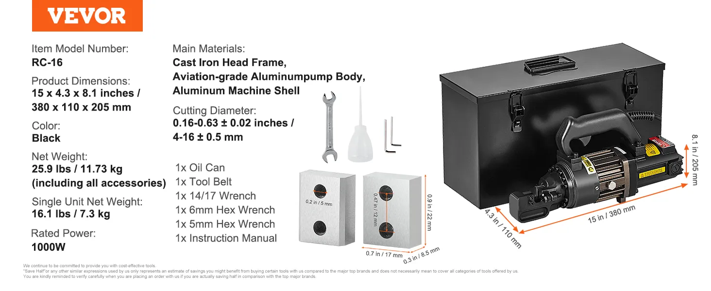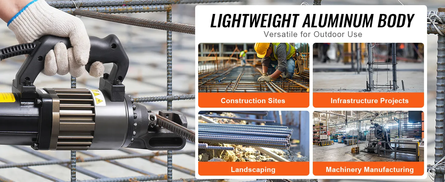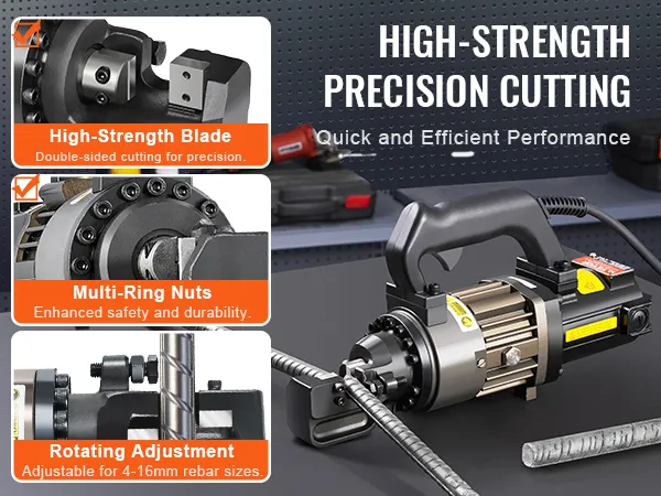 Groot snijbereik: aanpasbaar aan een snijbereik van 0,16-0,63 inch / 4-16 mm, kan gemakkelijk omgaan met verschillende snijbehoeften, geschikt voor het snijden van de volgende soorten wapeningsstaal: medium koolstofstaal, koolstofarm staal, rond staal, wapening, enz. .