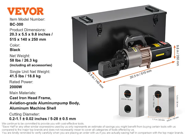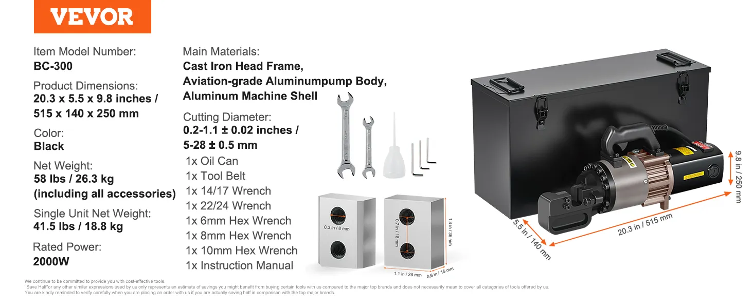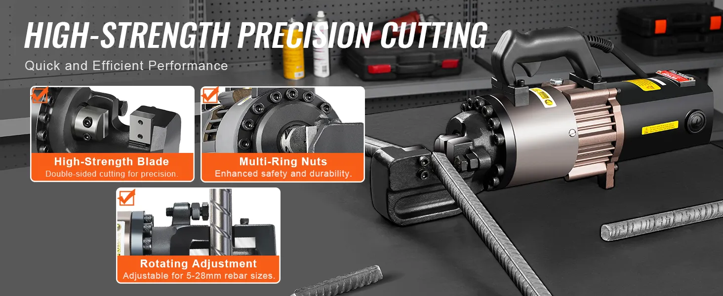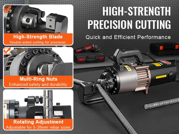 Groot snijbereik: aanpasbaar aan een snijbereik van 0,2-1,1 inch/5-28 mm, gemakkelijk aan te passen aan verschillende snijbehoeften, geschikt voor het snijden van de volgende soorten wapeningsstaal: medium koolstofstaal, koolstofarm staal, rond staal, wapening, enz. .