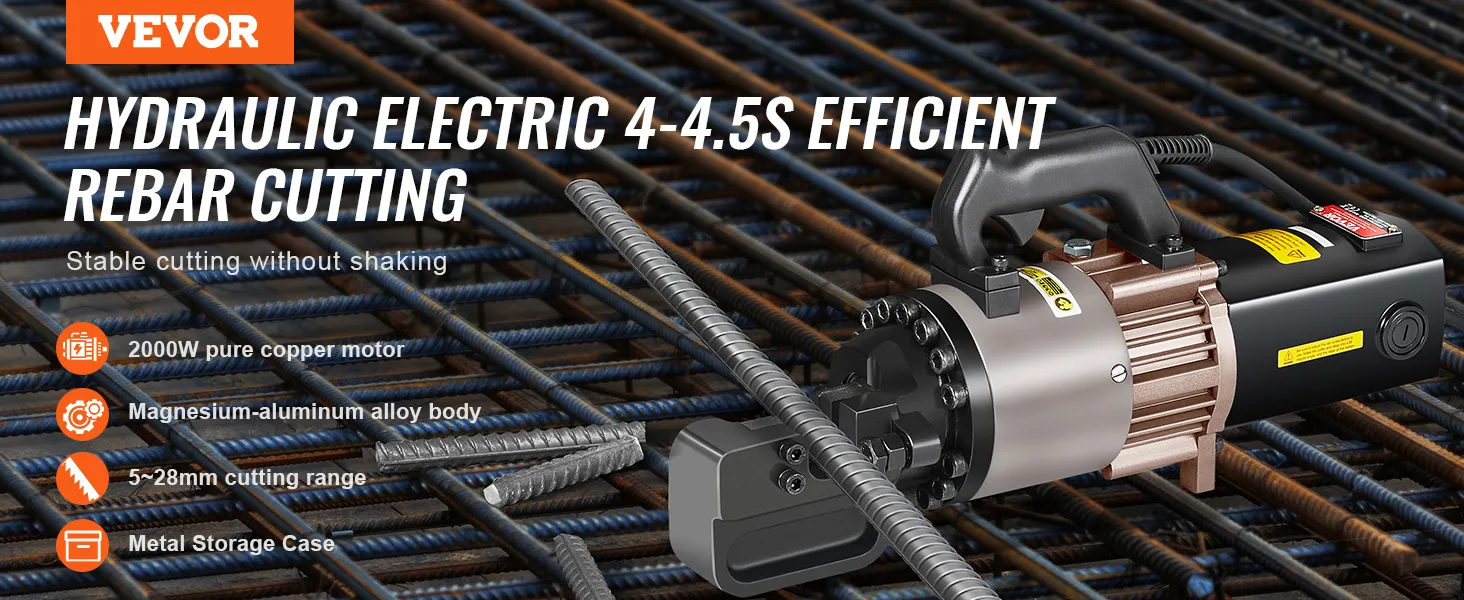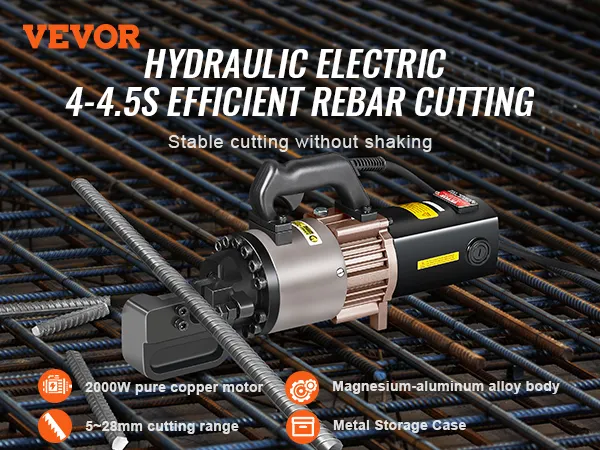 VEVOR elektrische hydraulische boutenschaar, 2000W wapeningsstaalknipper, knipt tot 5-28 mm dik wapeningsstaal in 2-3 seconden, wapeningsstaalknipper met oliehoudende accessoires, zwart