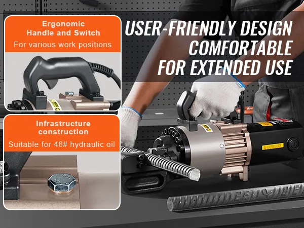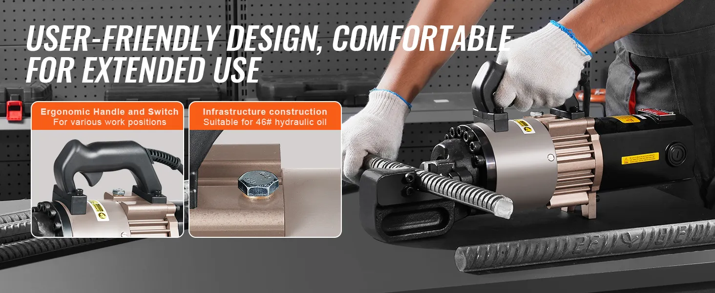 Snel snijden: hydraulische elektrische betonstaalknipper die massieve wapening nauwkeurig kan snijden in 2-3 seconden. Het snijoppervlak is vlak en glad zonder bramen. Krachtige motor van puur koper van 2000 W.