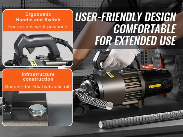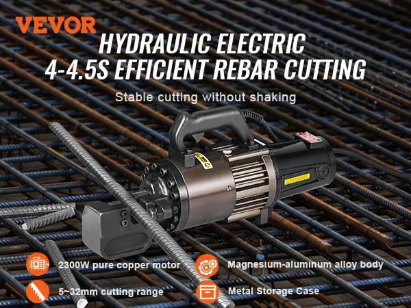 Fast Cutting: Hydraulic electric cutting rebar, able to accurately cut solid rebar in 2-3 seconds, the cutting surface is flat and smooth without burrs, 2300W pure copper motor strong power.