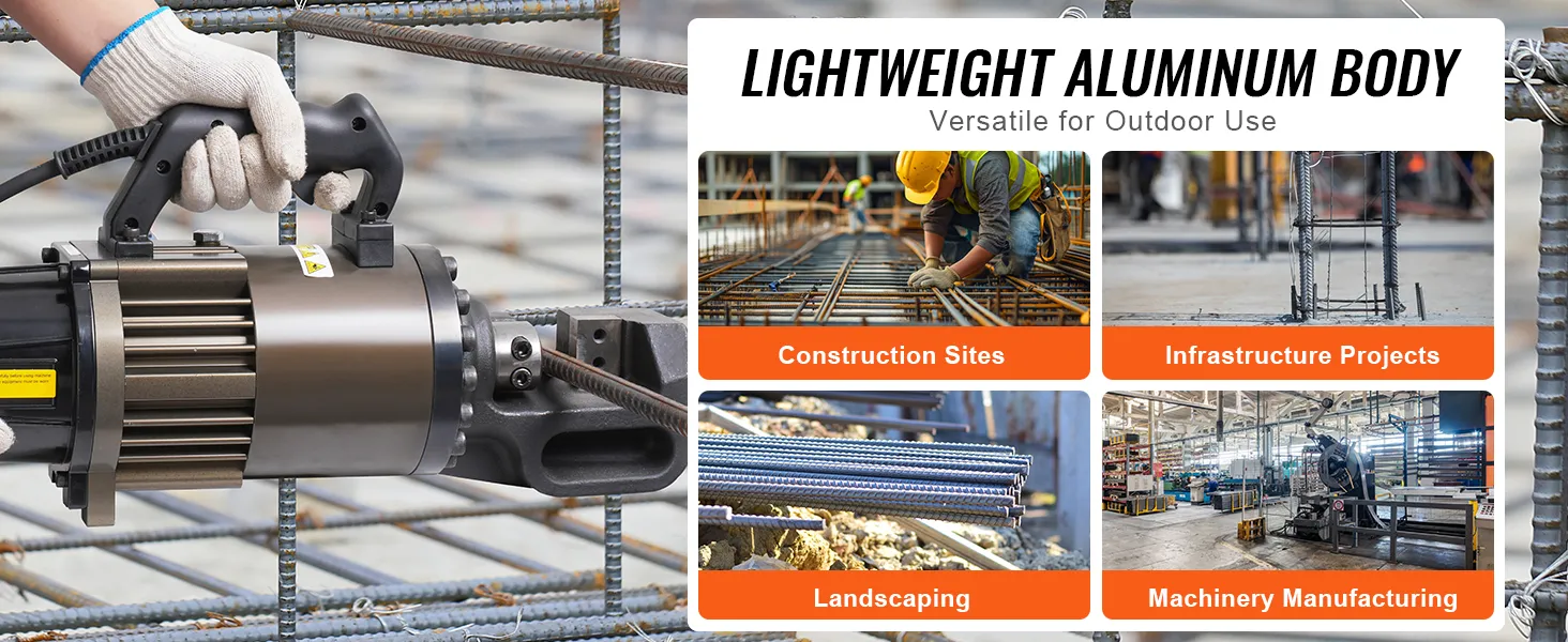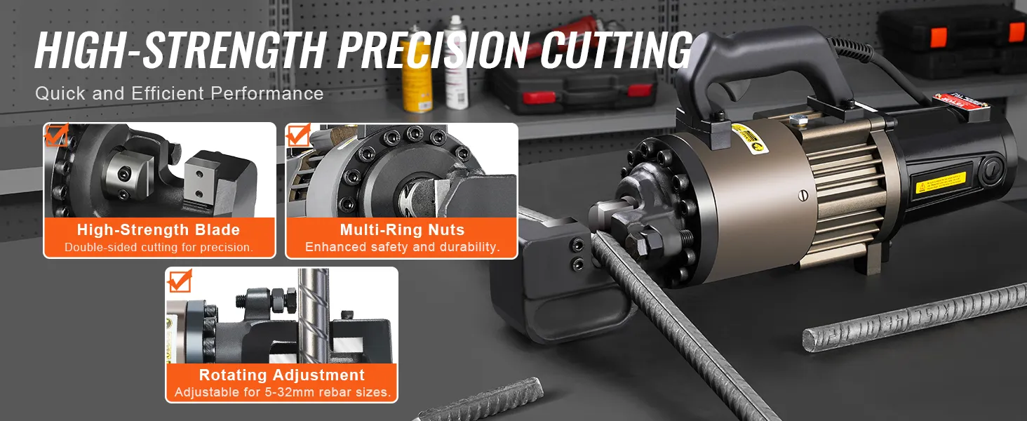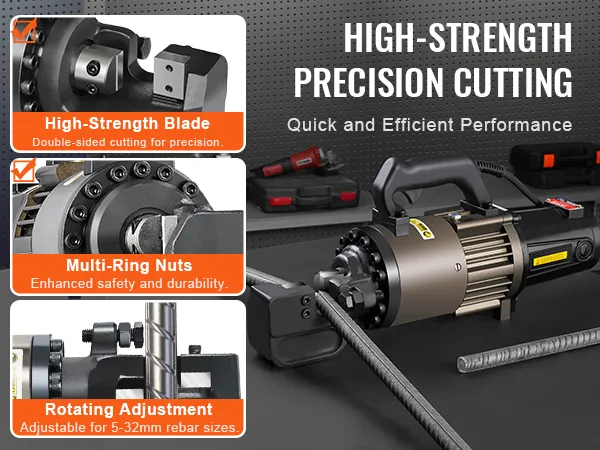 Wide Cutting Range: Adaptable to 0.2-1.26 inch / 5-32 mm cutting range, easy to cope with different cutting needs, suitable for cutting the type of rebar: medium carbon steel bar, low carbon steel bar, round steel bar, rebar and so on.