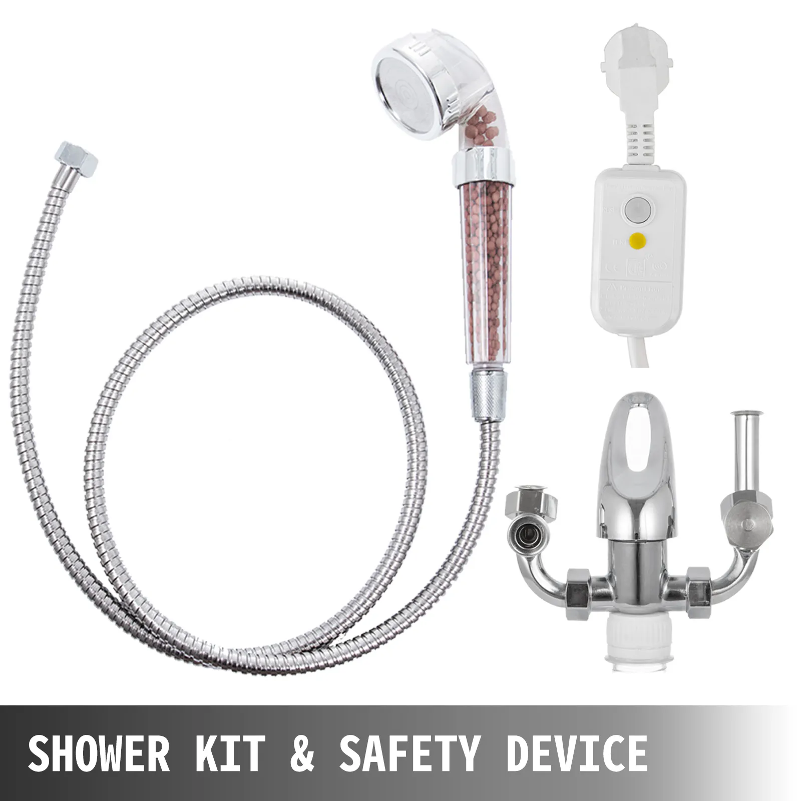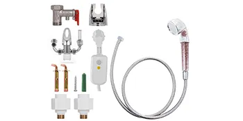 We sturen u een douchekop (met slang) en een stalen wastafelkraan voor meer gebruiksgemak. U kunt ook een stroomlekvrije schakelaar krijgen voor veilig douchen.