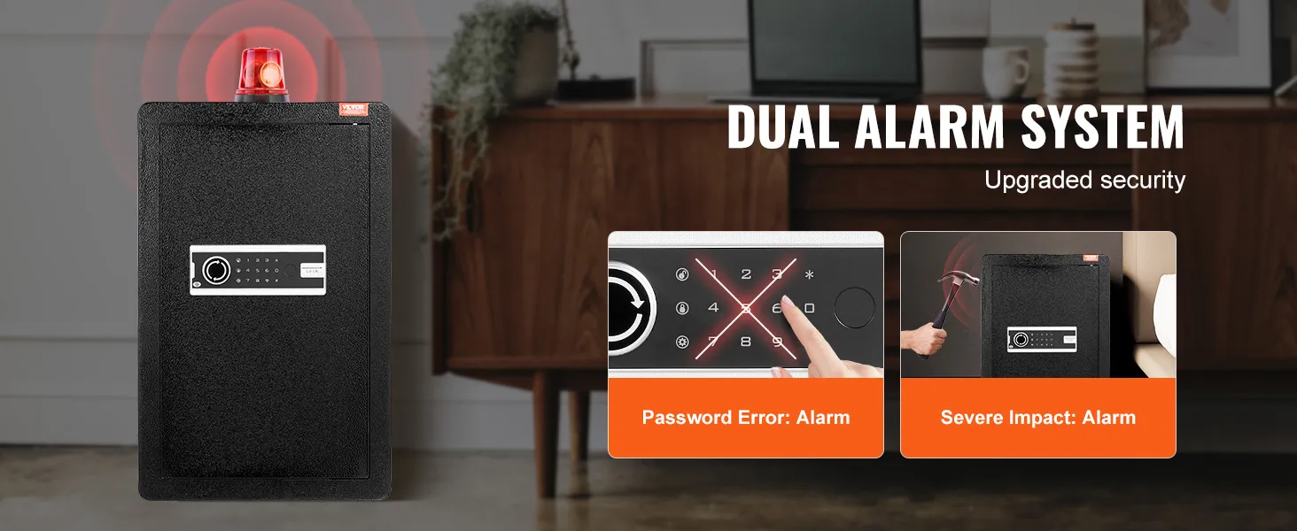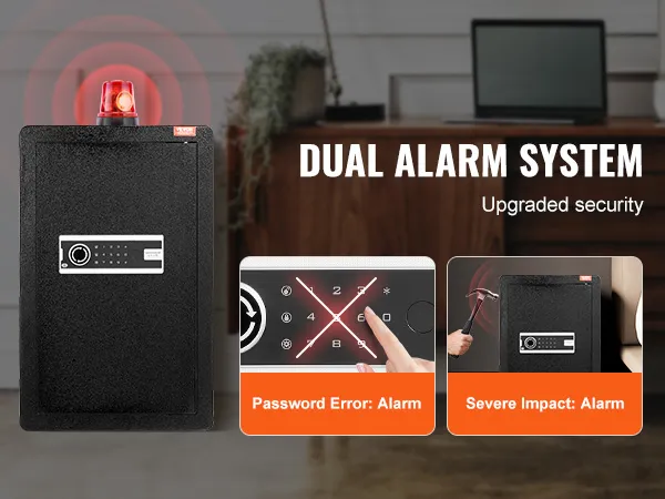 Dual Alarm System: Featuring a dual alarm system, the lock box will sound an alert if the password is entered incorrectly three times in a row or if it experiences a strong impact. This added security measure notifies you of any attempted theft, giving you peace of mind.