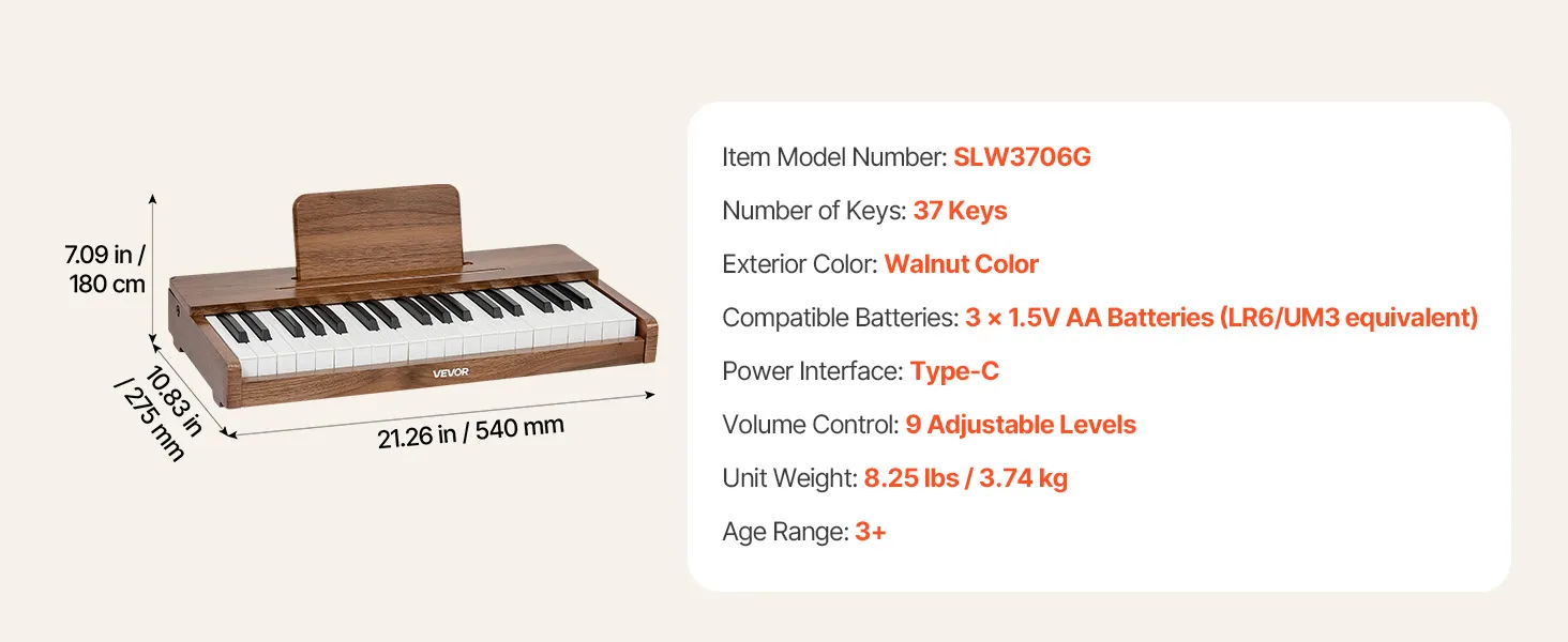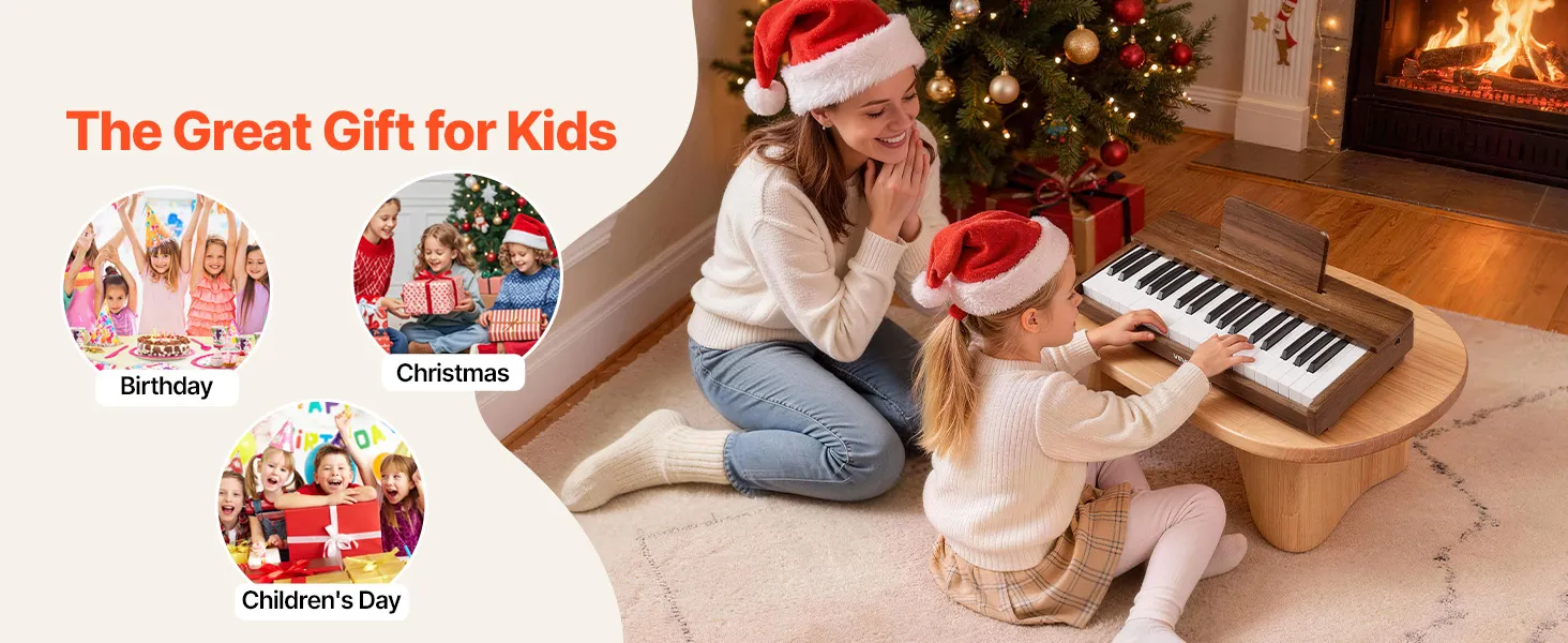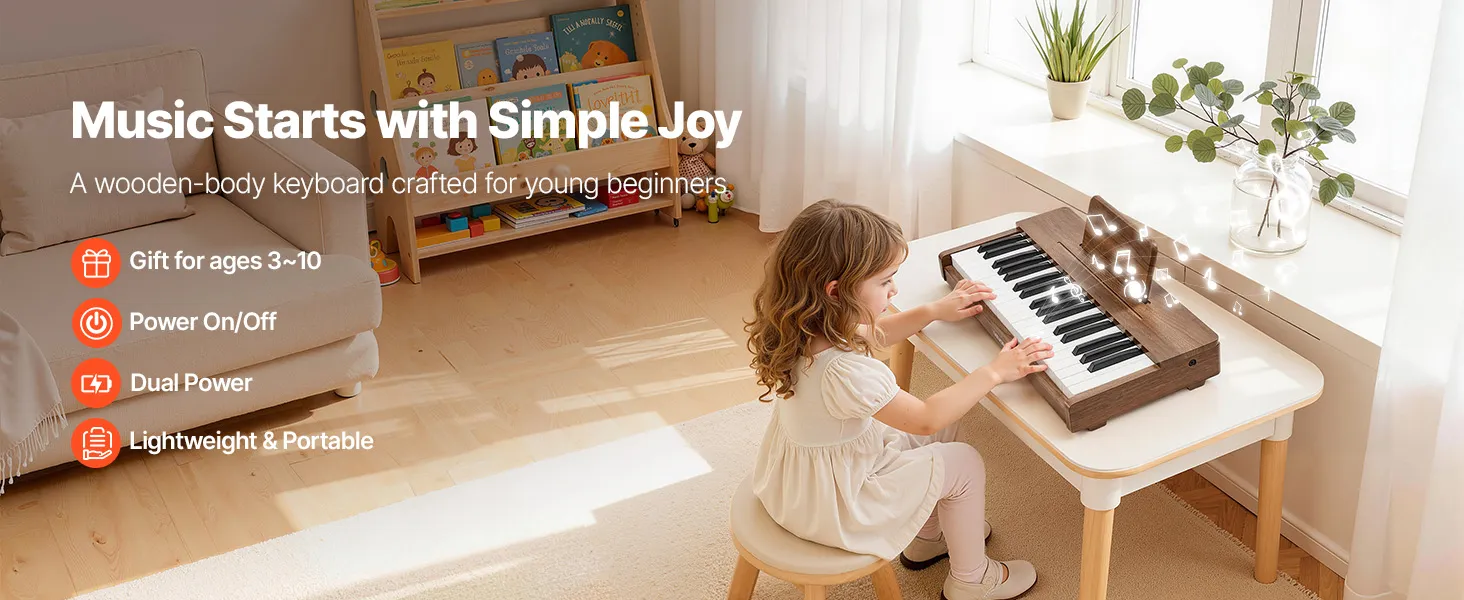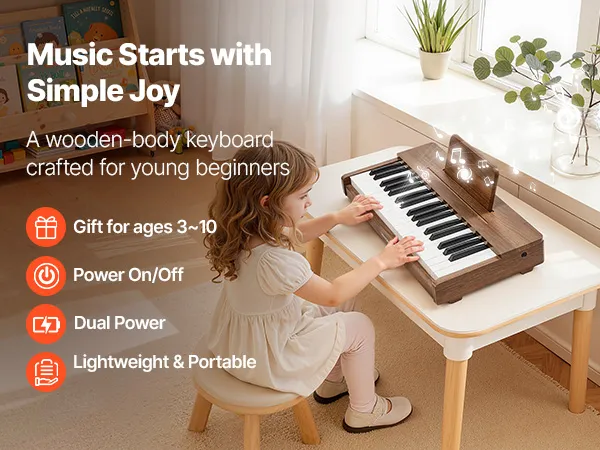 Speciaal ontworpen voor kinderen: Geschikt voor kinderen van 3 tot 10 jaar, met een toetsafstand die is geoptimaliseerd voor kleine handjes. De meegeleverde notenstickers en oefenbladen helpen beginners om noten sneller te herkennen en vol vertrouwen eenvoudige liedjes te spelen op de kinderpiano.