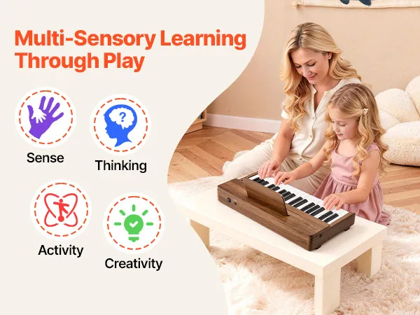 Of kinderen nu alleen spelen, met vrienden of met familie, muziek vormt een waardevolle verbinding. Dit elektronische houten muziekspeelgoed zorgt voor kleine, warme momenten van verbondenheid.