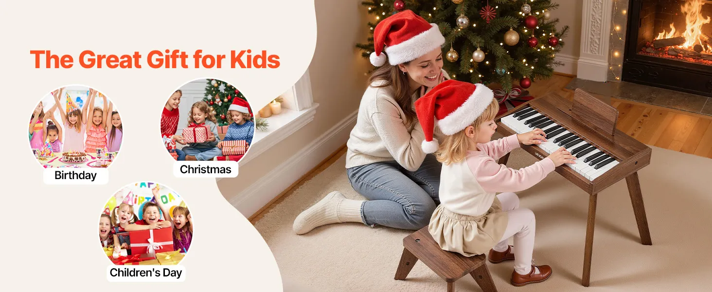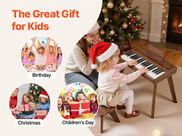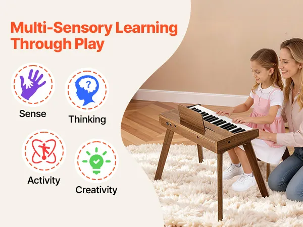 Speciaal ontworpen voor kinderen: Geschikt voor kinderen van 3 tot 10 jaar, met een toetsafstand die is geoptimaliseerd voor kleine handjes. De meegeleverde notenstickers en oefenbladen helpen beginners om noten sneller te herkennen en vol vertrouwen eenvoudige liedjes te spelen op de kinderpiano.