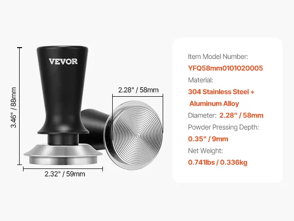 • 58 mm High-Efficiency Tamper: This espresso tamper features a pressing-type slow rebound design and an ergonomic handle for a comfortable grip, allowing easy tamping of coffee grounds and ensuring an even and balanced tamp.