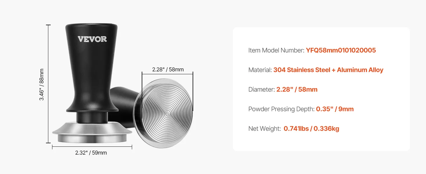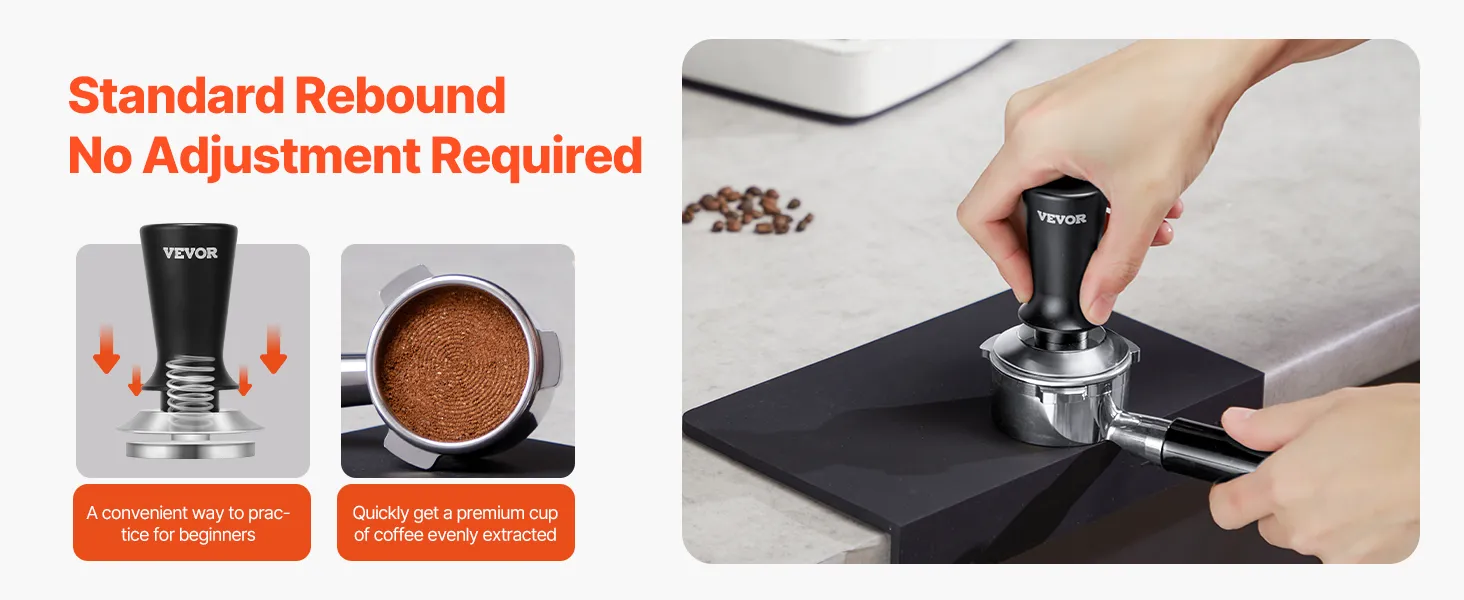 VEVOR Espresso Tamper 58mm, Spring Loaded Coffee Tamper, 30 lbs Tamper Tool Espresso, Stainless Tamper with Non-Slip Grip VEVOR Espresso Tamper 58mm, Spring Loaded Coffee Tamper, 30 lbs Tamper Tool Espresso, Stainless Tamper with Non-Slip Grip