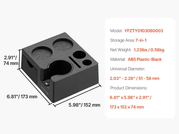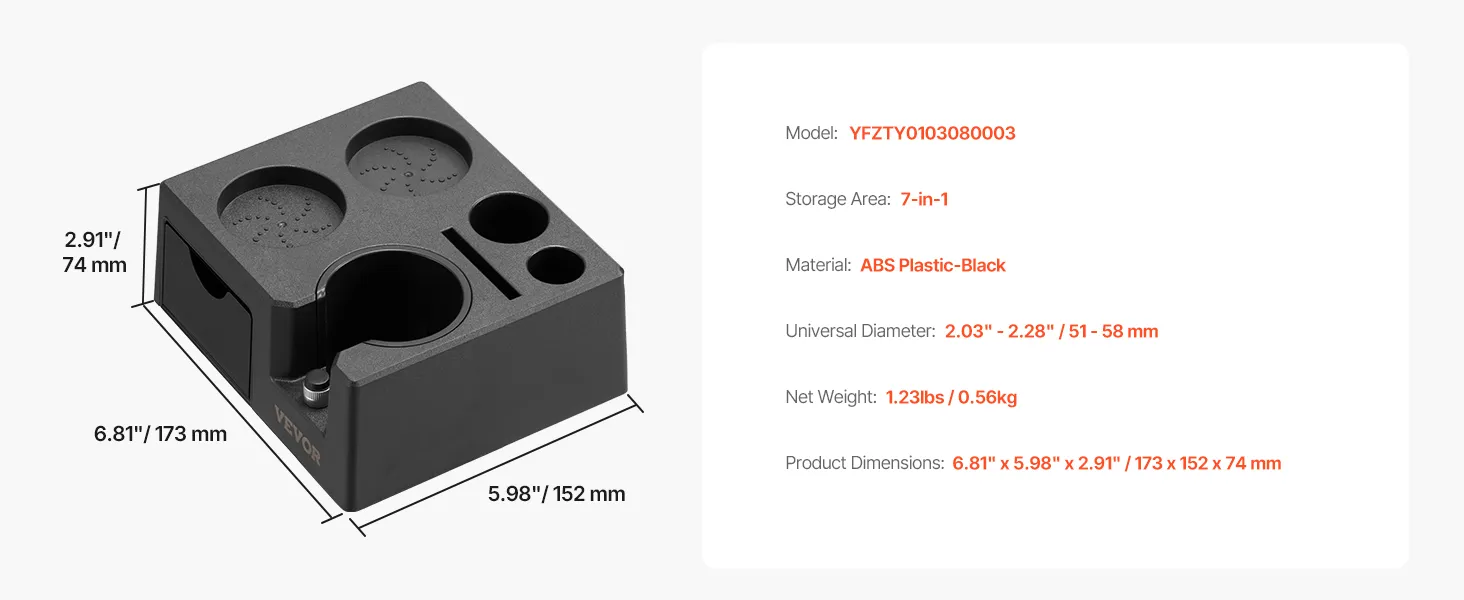 VEVOR Espresso Tamping Station, ABS Material, 7-in-1 Multifunctional Tamping Station with Detachable Slot, Easy to Clean Espresso Knock Box with Non-Slip Base, Fits for 51-58 mm Handles