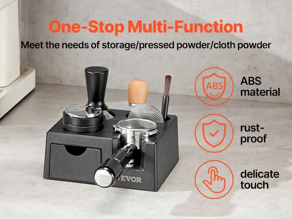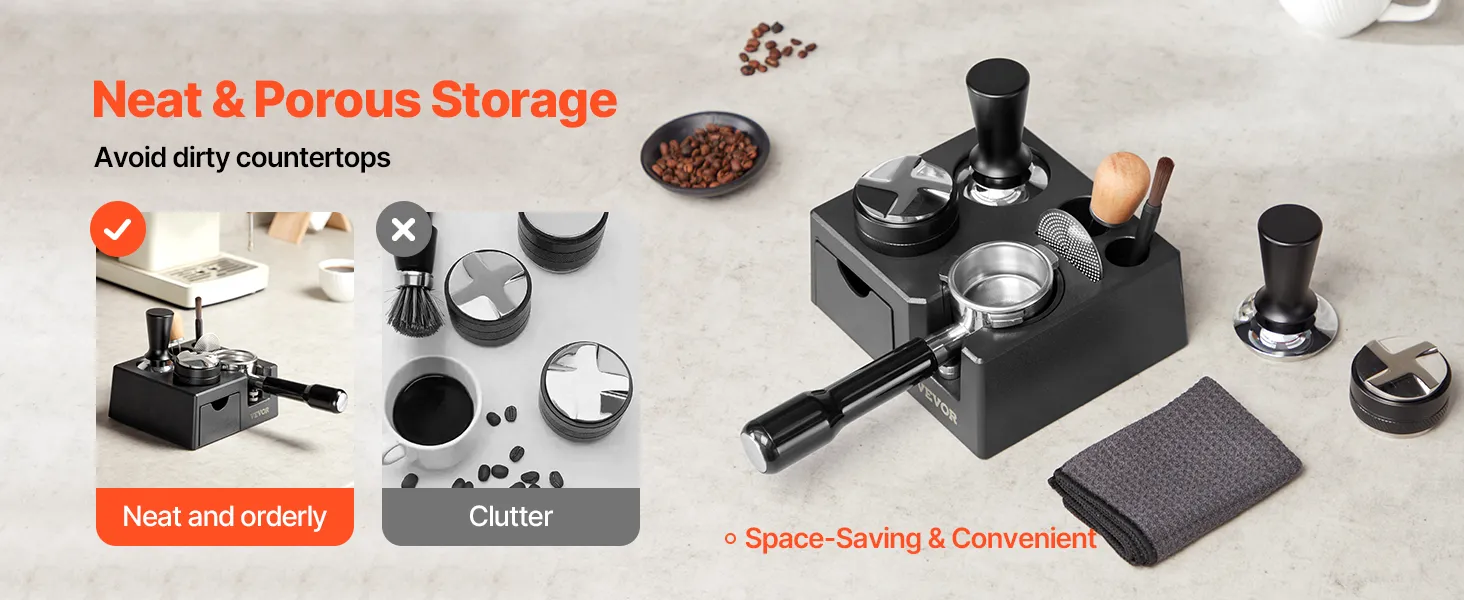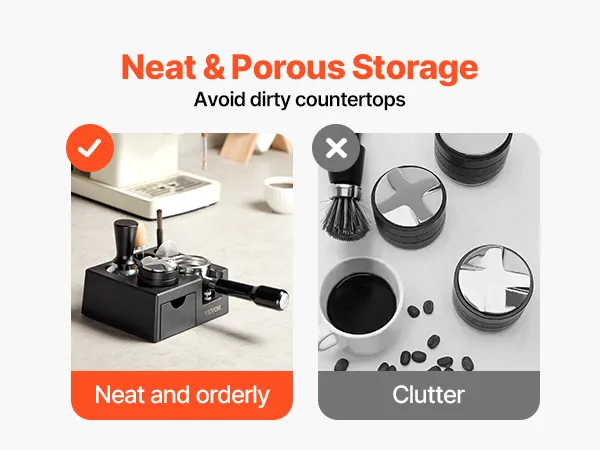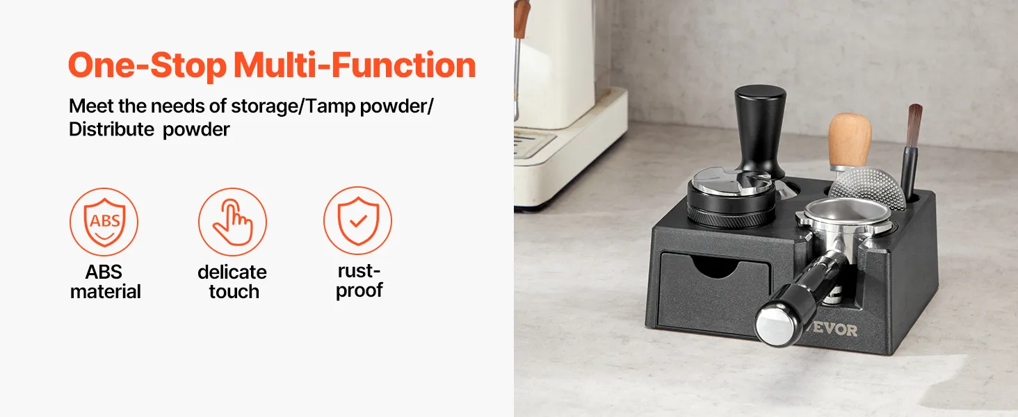 All-in-One Multi-Function Base: Custom-designed for a good fit, this base integrates distribution, tamping, knock-out, and storage functions, providing a one-stop solution for espresso preparation. The clever drawer design adds extra storage to keep your coffee station neat and organized.
