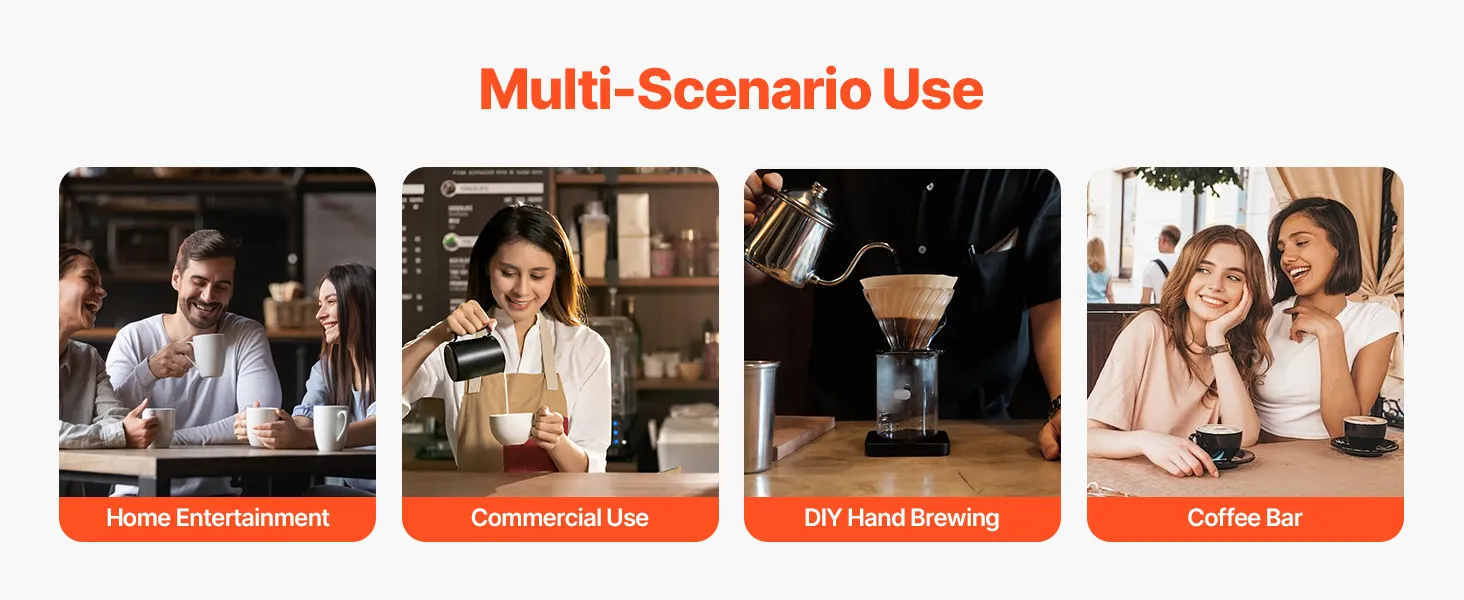 Designed for both home and commercial settings, it can withstand high-intensity use and frequent cleaning. It provides reliable performance, ensuring a consistent and enjoyable coffee brewing experience, bringing convenience and pleasure to your daily coffee ritual.
