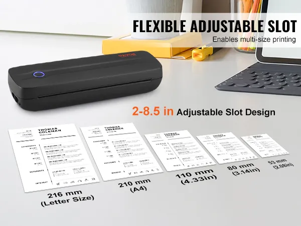 Veelzijdige papierformaten: Laat uw creativiteit de vrije loop met de verstelbare papierinvoer van de VEVOR inktloze printer. Hij verwerkt papierformaten van 50,8 tot 215,9 mm (2 tot 8,5 inch), waardoor hij ideaal is voor alles, van kleine etiketten tot standaarddocumenten in Letter-formaat. Het is uw veelzijdige printoplossing.