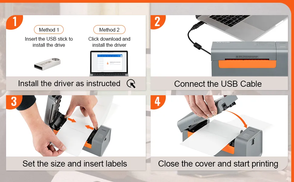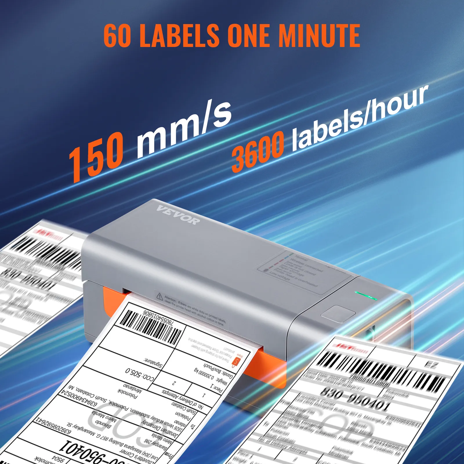 Onze labelprinter is voorzien van de nieuwste thermische printtechnologie waardoor er geen inkt en toner meer nodig is, waardoor u geld en tijd bespaart. Met een afdruksnelheid van 203 DPI en 150 mm/sec. produceert onze thermische printer 3600 labels per uur via USB. Het is ook compatibel met alle grote verkoopplatforms en ondersteunt Windows, Mac OS en Linux. Daarom wordt de VEVOR-printer veel gebruikt in kantoor, thuis, express, supermarkt, enz. Print, print, print en kijk wat je gemist hebt.