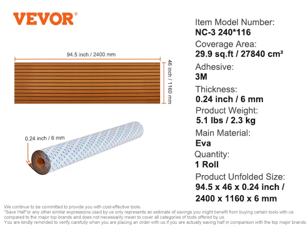 De VEVOR bootvloer is een kosteneffectieve oplossing voor bootvloerupgrades. Het biedt hoge kwaliteit voor een redelijke prijs. Dit maakt het een betaalbare optie voor booteigenaren. De vloer biedt een uitstekende prijs-kwaliteitverhouding. U hoeft niet veel meer te betalen dan een fractie van de kosten van andere vloeropties. Daarom kunt u uw boot verbeteren zonder uw budget te overschrijden. De kosteneffectiviteit van deze vloer stelt u in staat om uw boot te upgraden zonder duizenden uit te geven.