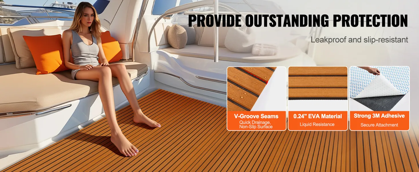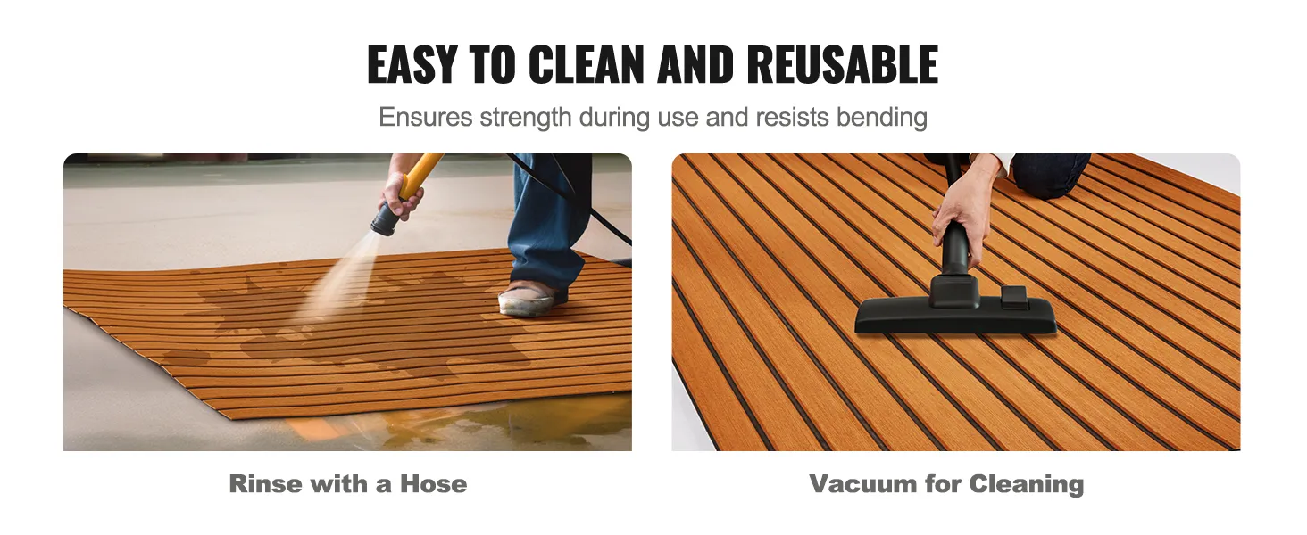 De VEVOR bootvloer is gemaakt van hoogwaardig EVA-schuim. Dit materiaal is bestand tegen slijtage. Het kan zwaar voetverkeer en zware maritieme omstandigheden weerstaan. De vloer zelf is ontworpen om jarenlang mee te gaan. Het scheurt of bladdert niet snel af. Dit betekent dat uw investering beschermd is. Ook is het betreffende materiaal UV-bestendig, wat vervaging voorkomt. Het zorgt er dus voor dat de vloer er langer als nieuw uitziet. Betrouwbare vloer: De duurzaamheid van de vloer maakt dit een betrouwbare keuze.