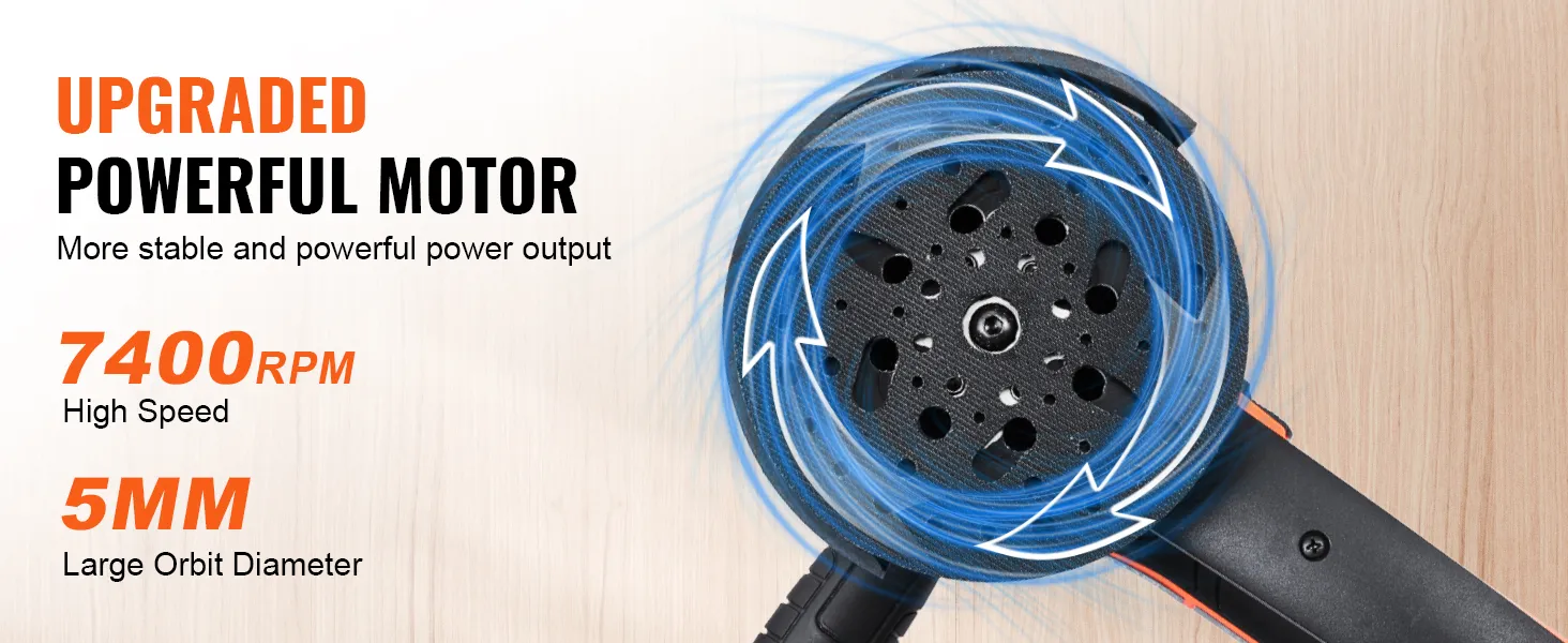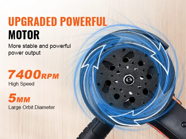 Precisiecontrole met 6 snelheden: Met 6 beschikbare snelheden van 3300 tot 7400 tpm past onze elektrische vlakschuurmachine zich met precisie en gemak aan elke taak aan. Of u nu werkt op kwetsbare oppervlakken die voorzichtig moeten worden gepolijst of op hoge snelheid moet worden geschuurd voor snelle materiaalverwijdering, deze vlakschuurmachine levert professionele resultaten.