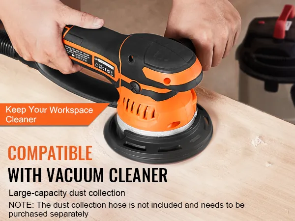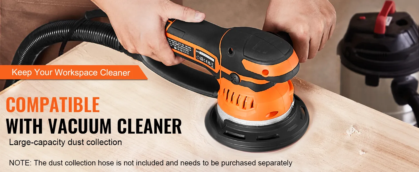 Onze elektrische excentrische schuurmachine is voorzien van een stofaansluiting waardoor deze eenvoudig kan worden aangesloten op een stofzuiger voor een efficiënte stofafzuiging. Het minimaliseert effectief het stof in de lucht tijdens het schuren, waardoor uw werkplek schoon blijft en een veiligere, comfortabelere werkomgeving ontstaat.